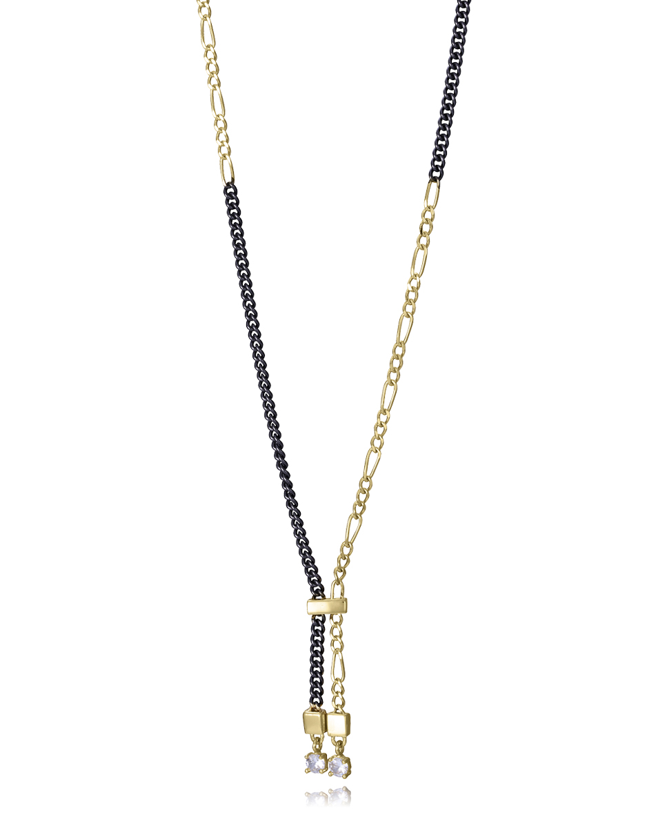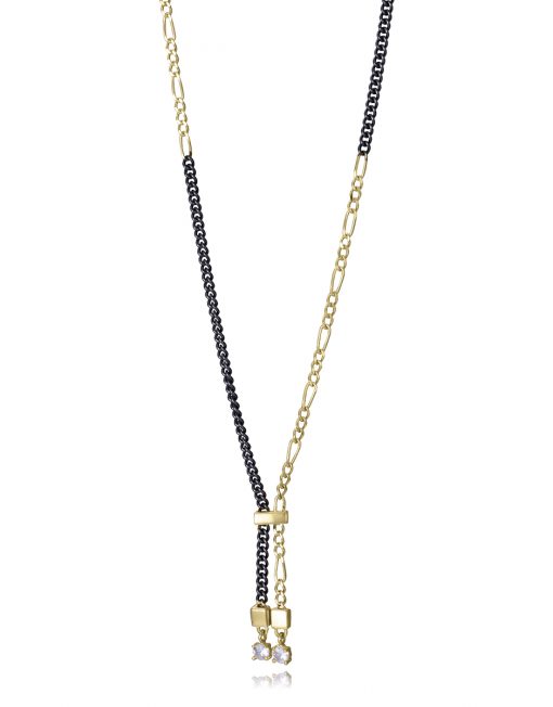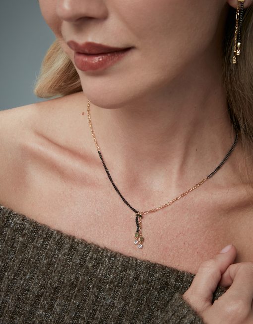 Un collar que combina modernidad y sofisticación en un diseño lleno de contraste. Elaborado en plata de primera ley con un delicado baño de oro y acabado IP gris, destaca por su cadena adornada con circonitas blancas que aportan destellos de luz y elegancia atemporal. La dualidad de tonos entre el dorado y el gris crea un efecto contemporáneo y refinado, ideal para realzar cualquier look con un toque distintivo. Con un largo de 42 cm más 3 cm de extensión, se adapta con facilidad a distintos estilos y escotes. Una joya versátil y elegante, perfecta para mujeres que buscan originalidad y distinción.