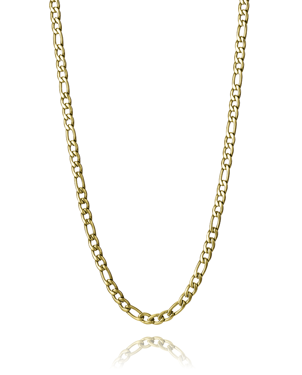 Un collar que exuda sofisticación y estilo moderno. Fabricado en acero con un acabado IP dorado, presenta una cadena de diseño elegante y atemporal, perfecta para añadir un toque de lujo a cualquier look. Con un largo de 55 cm más 5 cm de extensión, se adapta cómodamente a diferentes estilos y escotes, ofreciendo versatilidad y comodidad. Ideal para hombres que buscan un accesorio que combine distinción y frescura, este collar es perfecto tanto para el día a día como para ocasiones más especiales, realzando el estilo con un toque de brillo sutil.