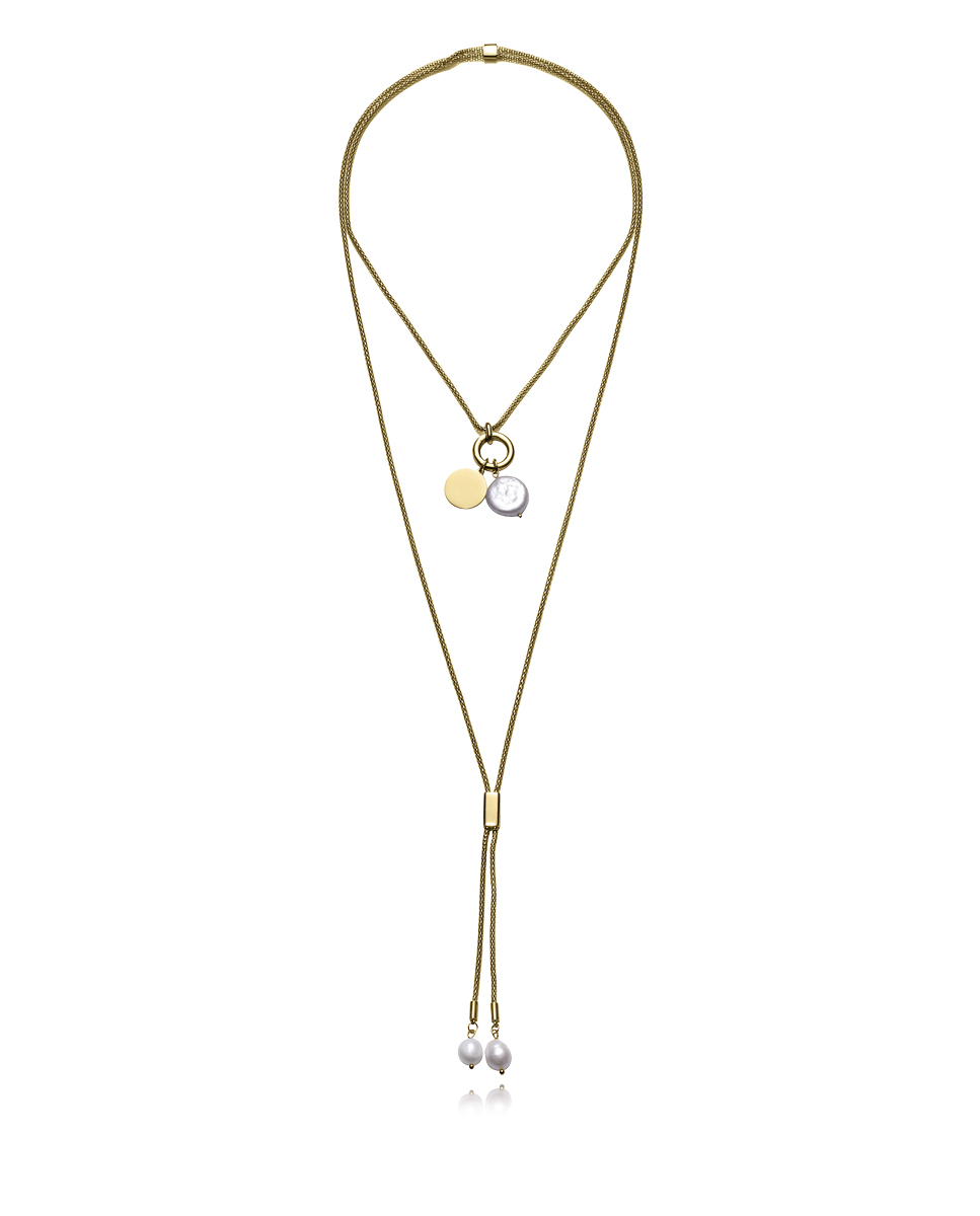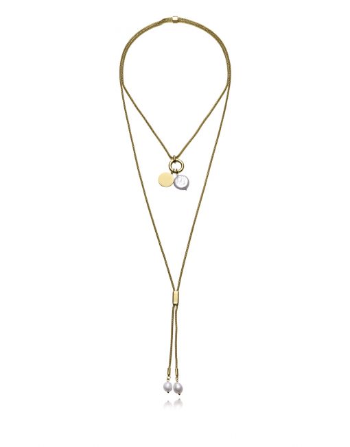 Características Usuario: Mujer Metal: Acero Material Principal: Acero Otros Materiales: Perla natural agua dulce Baño / Chapado: IP Dorado Largo / Diametro: TOTAL 125 CM Color: Dorado