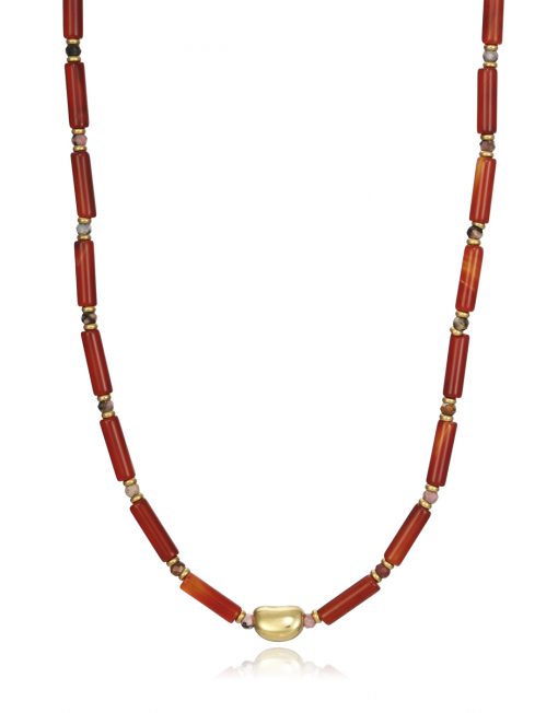 Información del producto Collar de mujer Viceroy Chic acero en Ip dorado con piedras rojas de cornelina y rodonita, largo 42,3cm.