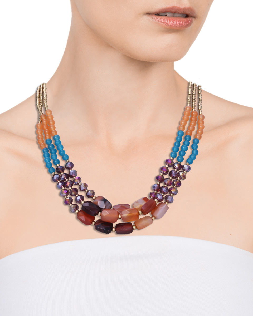 Información del producto Collar de mujer Viceroy Chic de acero Ip dorado, ágata, jade y piedras sintéticas, largo 43,5 cm.