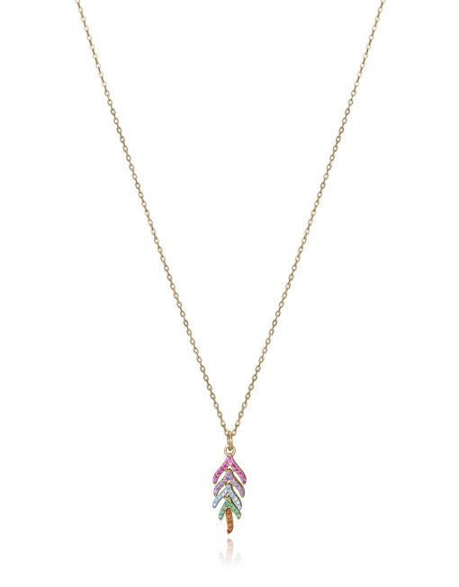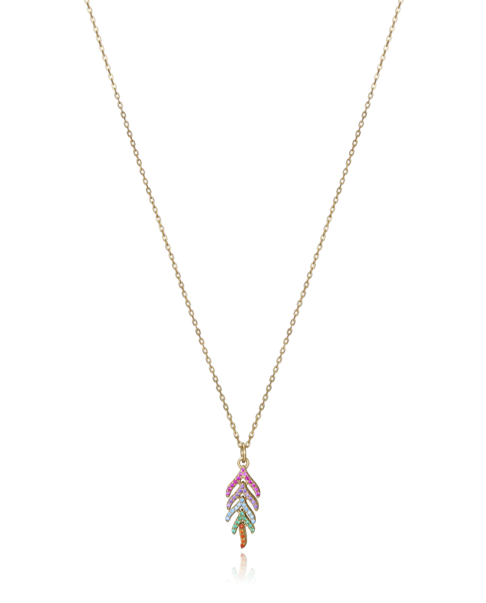 Atractivo colgante dorado con circonitas de color naranja, verde, azul, morado y rosa. Una combinación de colores atrevida que alegra cualquier look. Con sus 42 cm de largo, no dejará a nadie indiferente. Consíguelo y combínalo para lucir refinada y con estilo. Longitud: 42 cm.