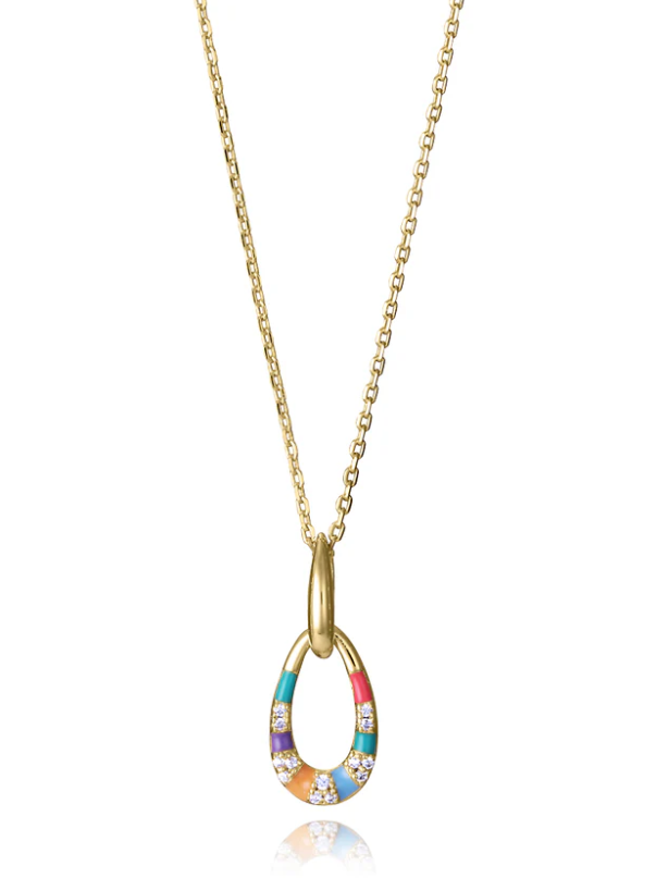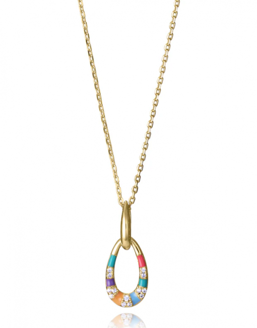 Un collar que combina elegancia y creatividad en un diseño lleno de luz. Realizado en plata de primera ley con un delicado baño de oro, presenta un colgante adornado con circonitas blancas que aportan un brillo radiante, mientras que el esmalte de colores añade un toque vibrante y moderno. El contraste entre el esmalte y las circonitas crea una pieza única y sofisticada, ideal para realzar cualquier look. Con un largo de 42 cm más 3 cm de extensión, se adapta perfectamente a diferentes estilos y escotes, convirtiéndolo en un accesorio versátil y lleno de personalidad. Una joya perfecta para mujeres que buscan un toque de distinción y color.