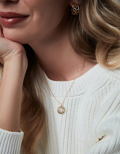 Un collar que combina ternura y sofisticación en un diseño único. Elaborado en plata de primera ley con un delicado baño de oro, presenta un colgante redondo que encierra dos símbolos de luz y sentimiento: una circonita blanca que aporta destellos de elegancia atemporal y un corazón de madre perla que transmite delicadeza y pureza. La fusión de materiales crea un contraste sutil y refinado, ideal para realzar cualquier look con un toque especial. Con un largo de 42 cm más 3 cm de extensión, se adapta con facilidad a distintos estilos. Una joya pensada para mujeres que buscan elegancia con significado.
