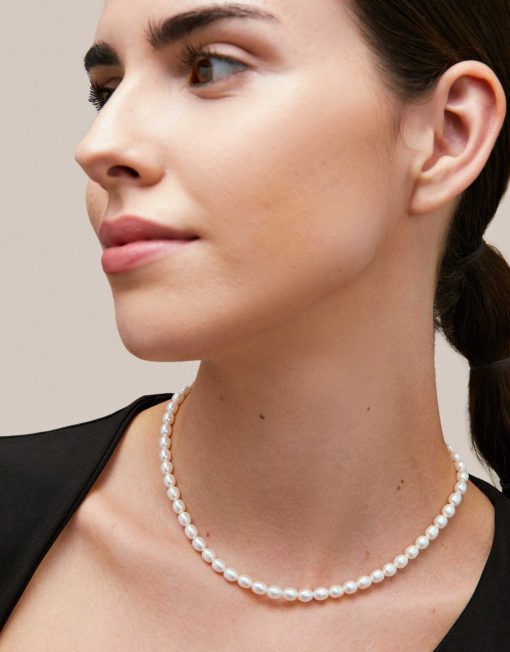 Collar Angy Vidal & Vidal Colección Rio Chapado Oro 18 Kt perlas cultivadas de 5mm. Medida: 39 cm + 6 cm cadena ajustable.