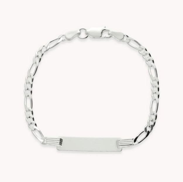 Pulsera de plata de ley 925 estilo esclava con eslabón tipo cartier de 2 mm de ancho y placa central de 5 mm de ancho y 20 mm de largo, cierre de mosquetón y 15 cms de largo.