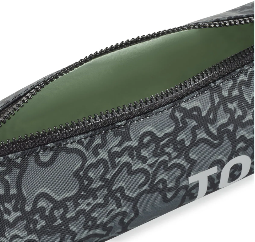 Estuche TOUS Kaos Mini Evolution Nylon de poliéster reciclado con estampado Kaos en color negro. Cierre de cremallera. Medidas (alto x ancho x fondo): 8 x 22 x 8 cm.