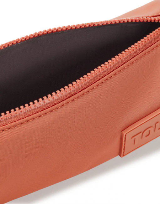 Estuche TOUS Marina de poliéster reciclado en color naranja. Cierre de cremallera. Medidas (alto x ancho x fondo): 7 x 22 x 7 cm.