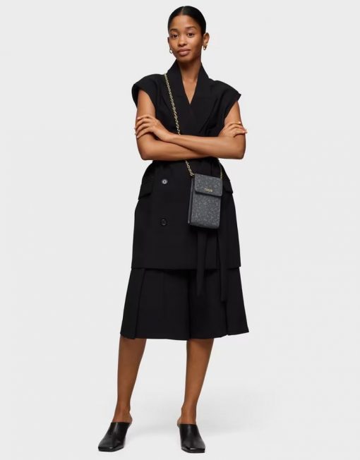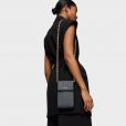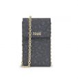 Funda de móvil colgante Kaos Mini Lines de lona con detalles de piel sintética en color gris oscuro. Cierre de botón magnético. Tiene seis ranuras para tarjetas. Asa bandolera fija. Medidas (alto x ancho x fondo): 19,5 x 10,9 x 3,7 cm.