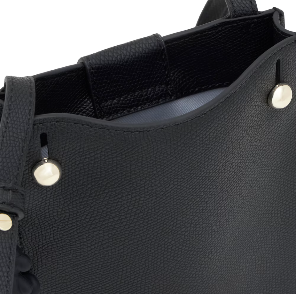 Funda de móvil colgante TOUS Back to basics de poliuretano en color negro. Cierre de botón magnético. Bolsillo exterior con botón magnético. Asa bandolera ajustable. Medidas (alto x ancho x fondo): 21,5 x 14 x 2,5 cm.