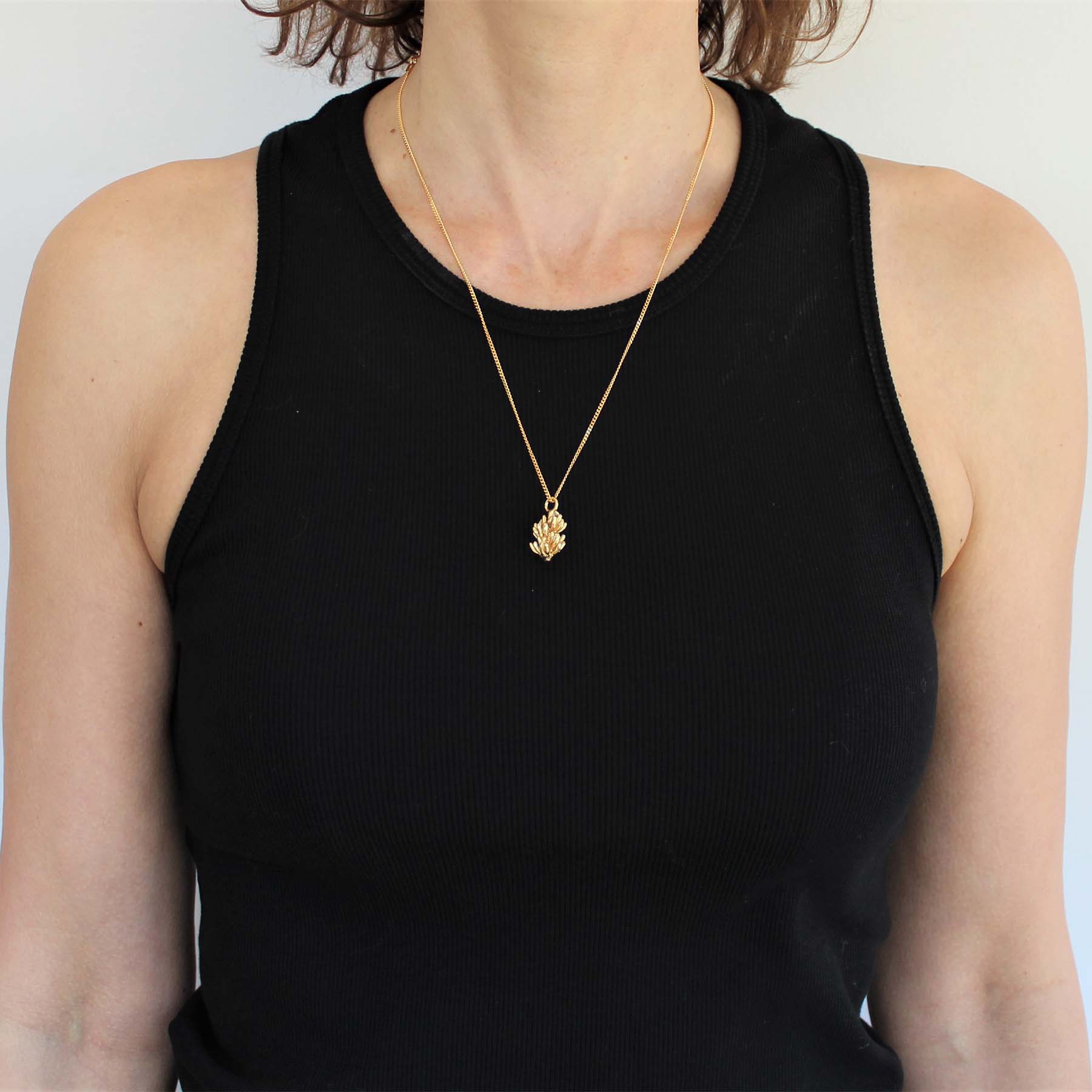 Esta gargantilla tiene un colgante tallado en forma de manilla de plátanos, inspirada en la naturaleza de las Islas Canarias. Expresiva y delicada, es ideal para dar un toque original y divertido a tu look.