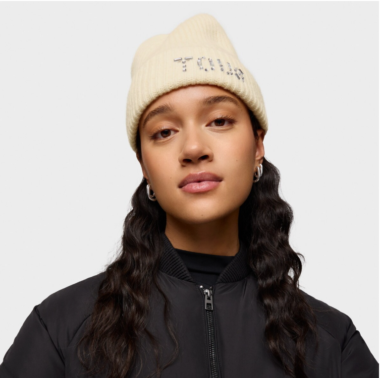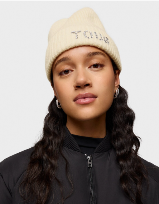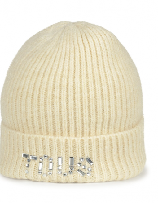 Gorro beanie TOUS Crystal en color beige. Talla única. Composición: 50 % poliéster reciclado, 30 % poliéster, 11 % acrílico, 6 % lana y 3 % spandex.