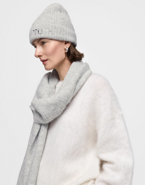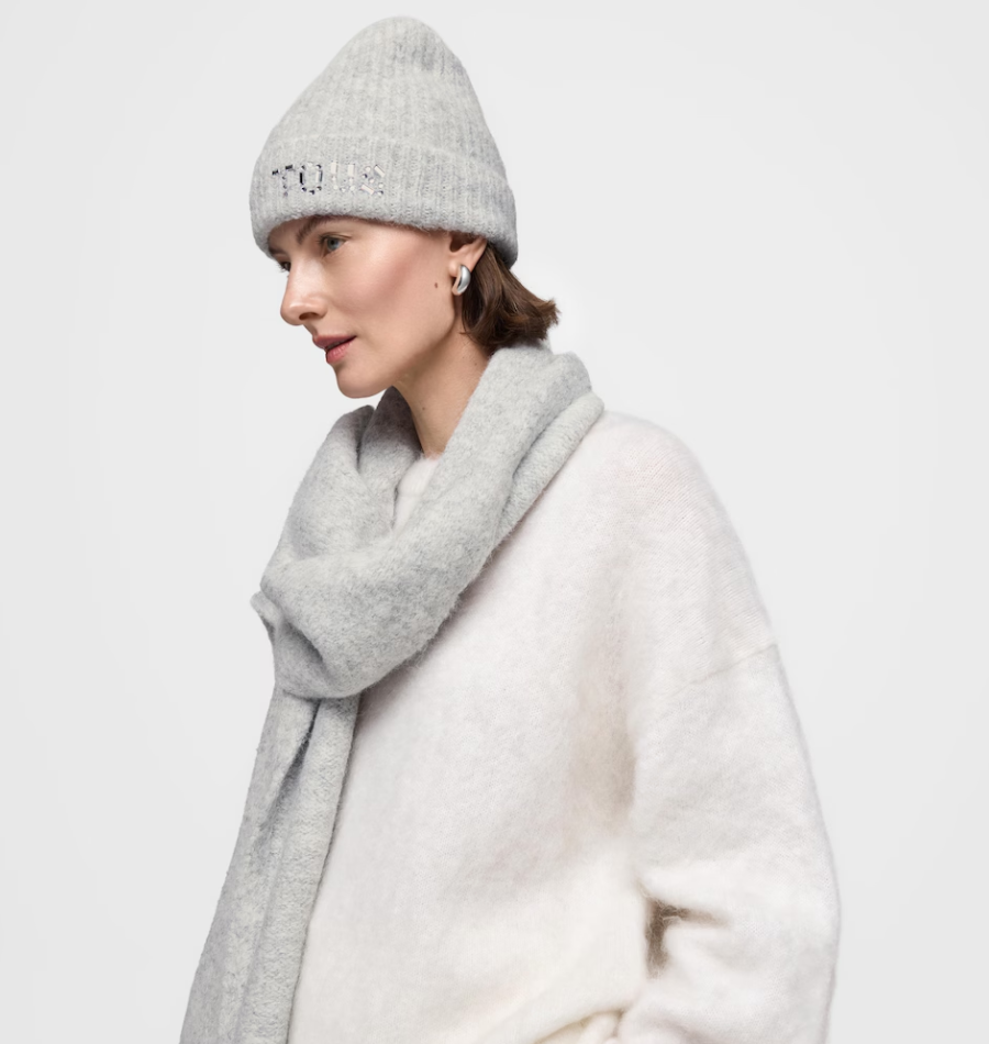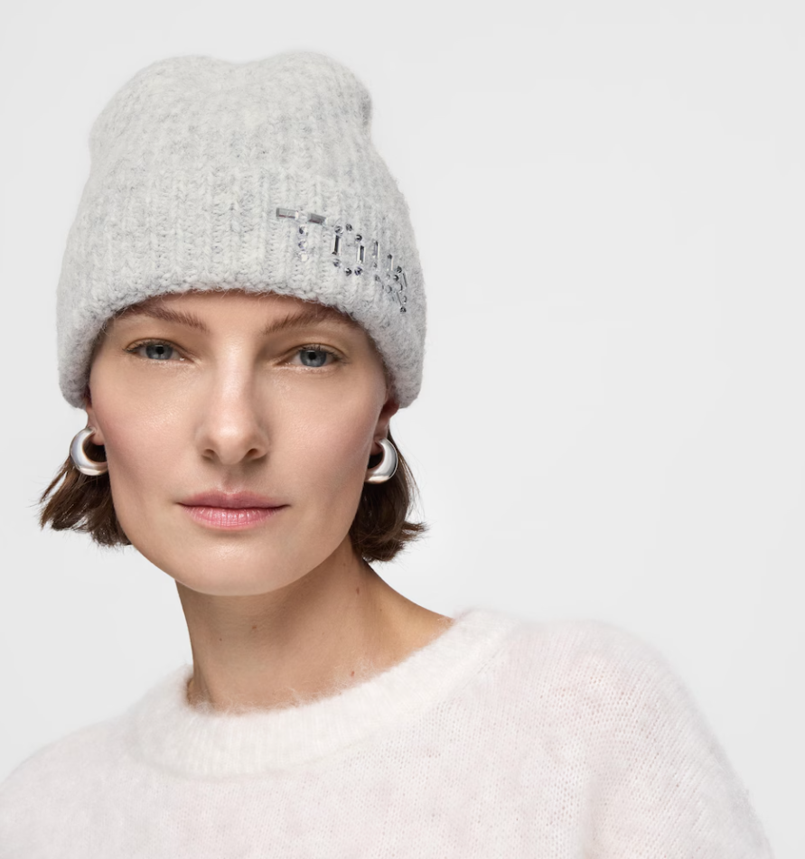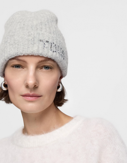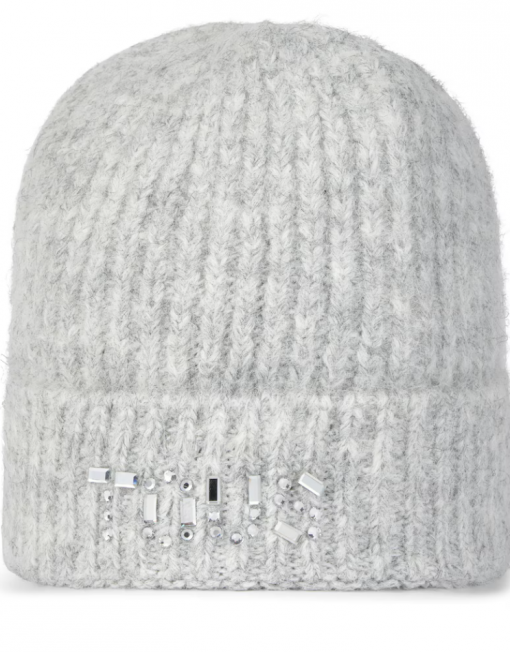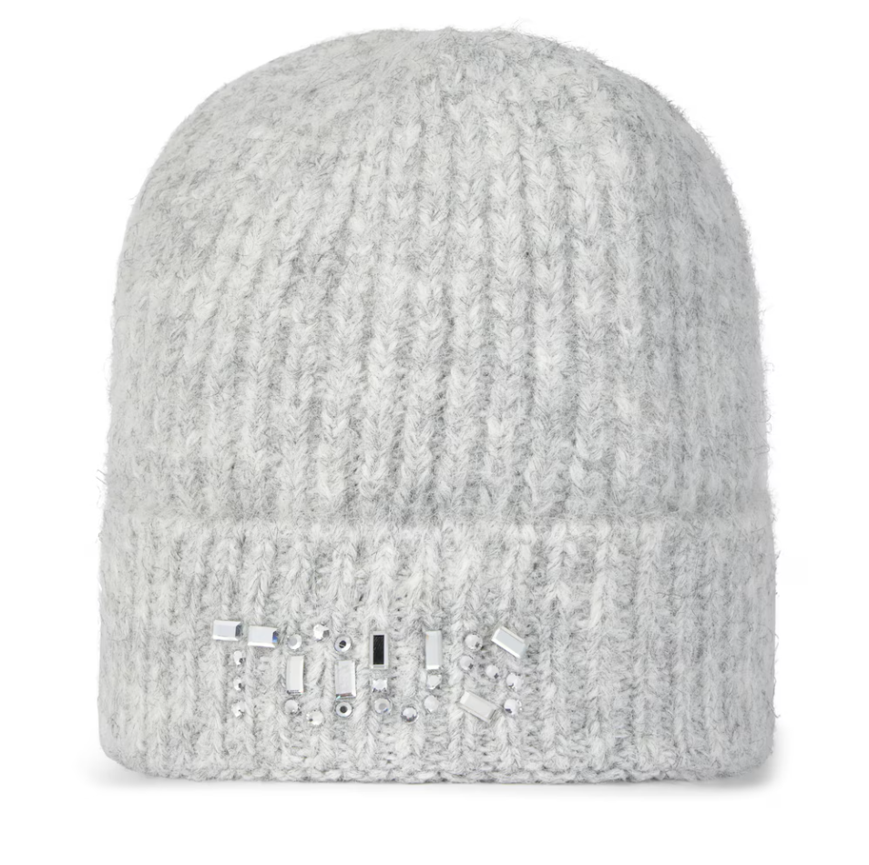 Gorro TOUS Crystal en color gris claro. Talla única. Composición: 50 % poliéster reciclado, 30 % poliéster, 11 % acrílico, 6 % lana y 3 % spandex.
