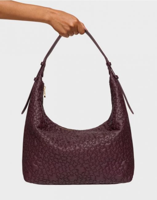 Bolso de hombro grande TOUS Puffy bear de poliuretano en color burdeos. Cierre de cremallera. Bolsillo interior con cremallera. Asa de hombro ajustable. Medidas (alto x ancho x fondo): 34 x 41 x 12,5 cm.