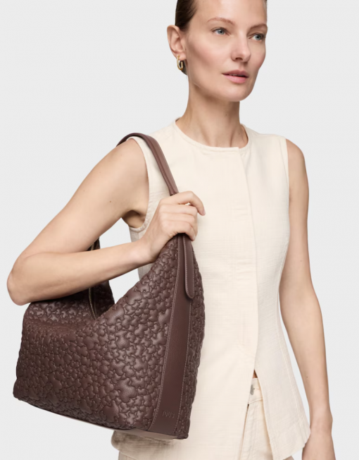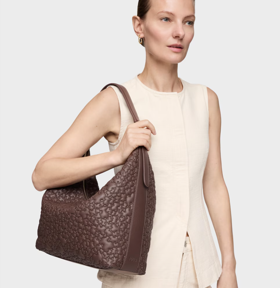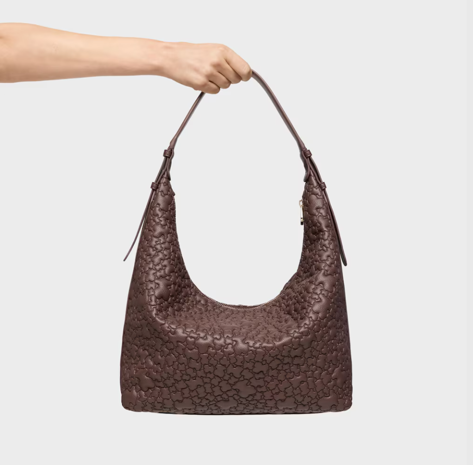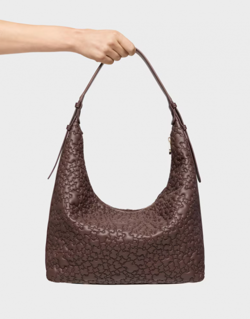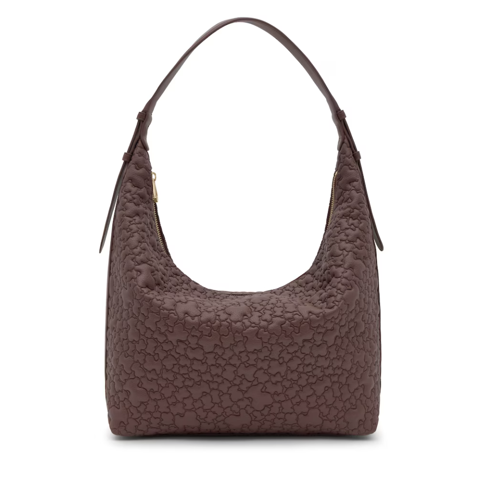 Bolso de hombro grande TOUS Puffy bear de poliuretano en color marrón. Cierre de cremallera. Bolsillo interior con cremallera. Asa de hombro ajustable. Medidas (alto x ancho x fondo): 34 x 41 x 12,5 cm.