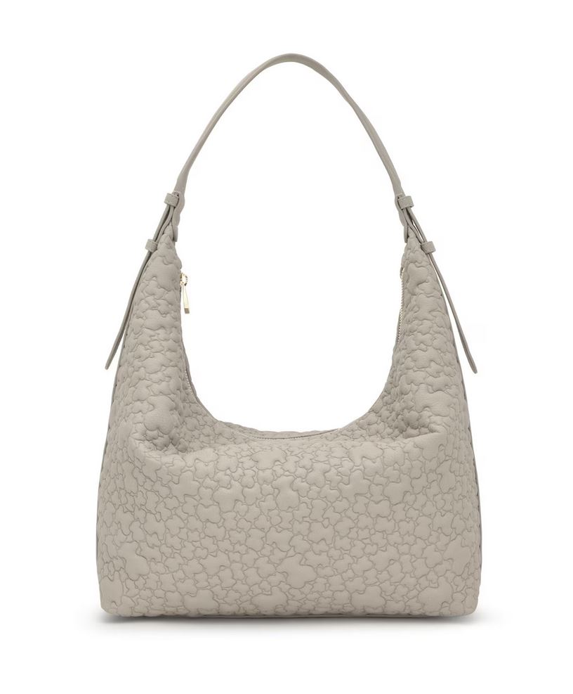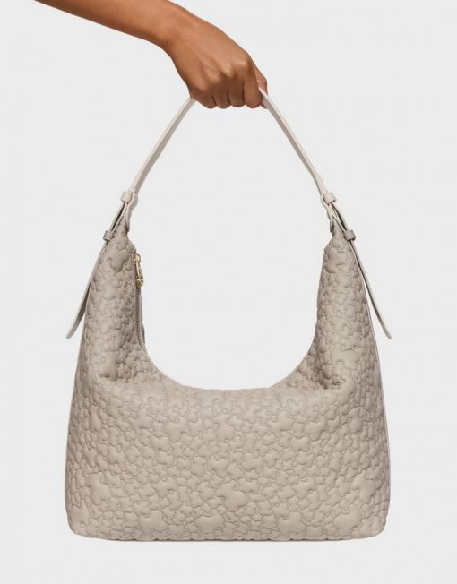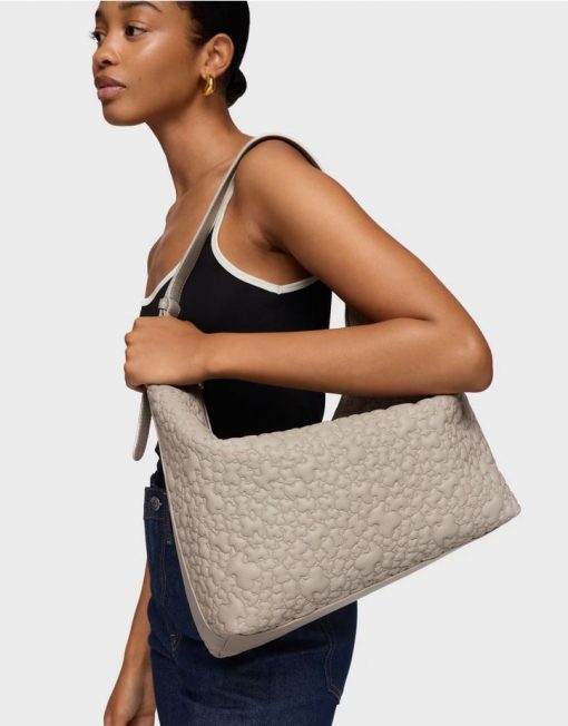 Bolso de hombro grande TOUS Puffy bear de poliuretano en color topo. Cierre de cremallera. Bolsillo interior con cremallera. Asa de hombro ajustable. Medidas (alto x ancho x fondo): 34 x 41 x 12,5 cm.