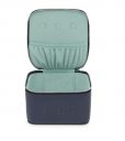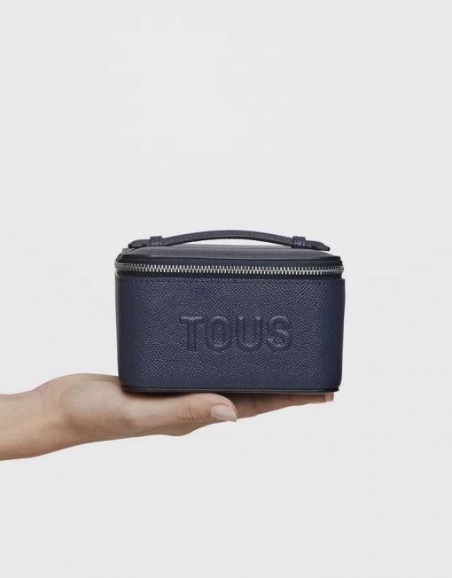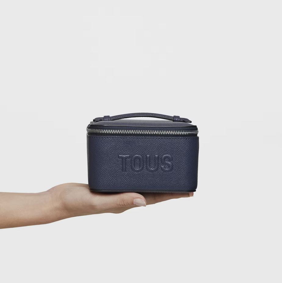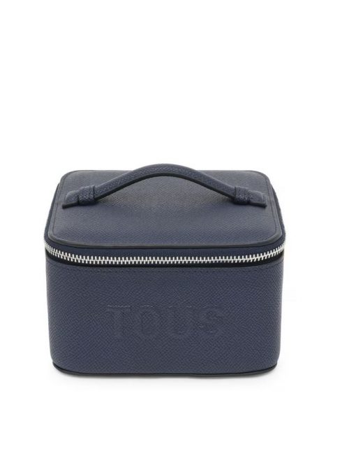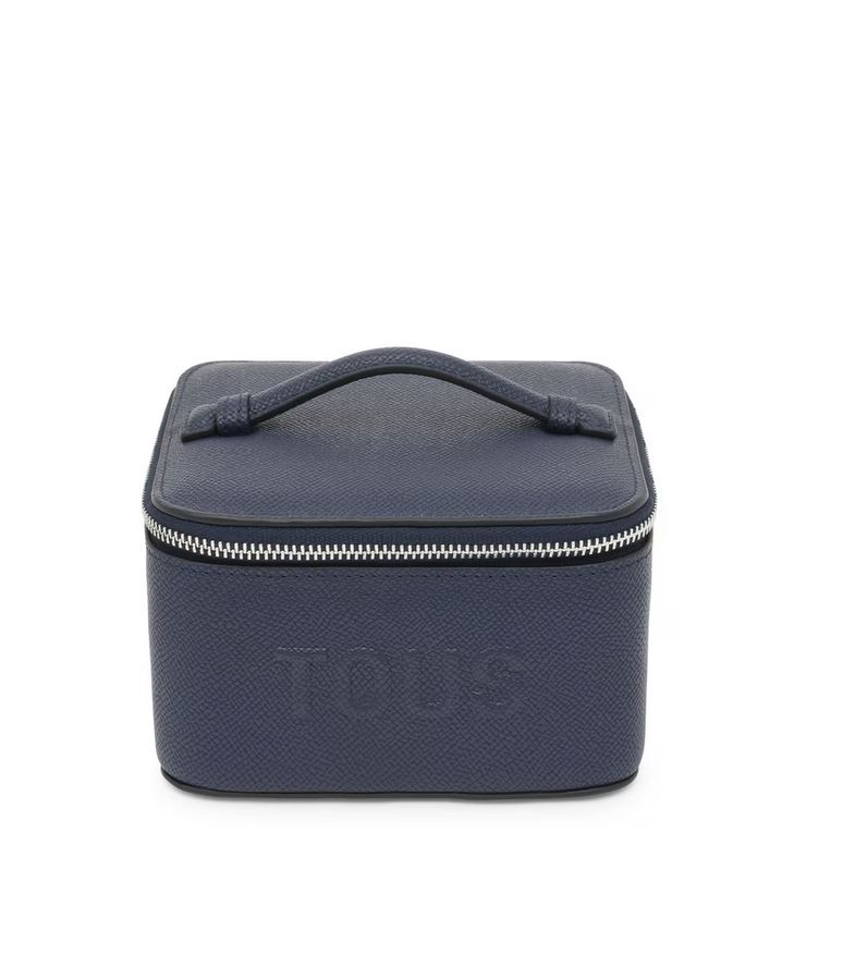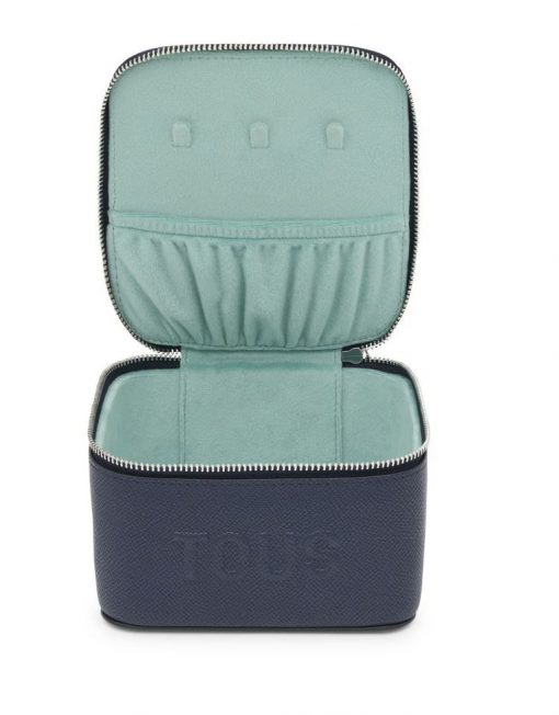 Joyero TOUS Brenda de poliuretano en color azul marino. Cierre de cremallera. En el interior contiene un bolsillo abierto y espacio para guardar joyas como colgantes, anillos o pendientes. Medidas (alto x ancho x fondo): 8 x 13 x 12,5 cm.