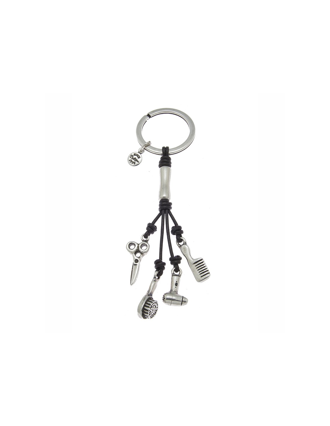 Llavero metálico bañado en plata que combina charms temáticos peluquería bañados en plata. Un diseño personal y conceptual dedicado a las peluqueras que con su trabajo mejoran nuestra imagen y estado de ánimo.