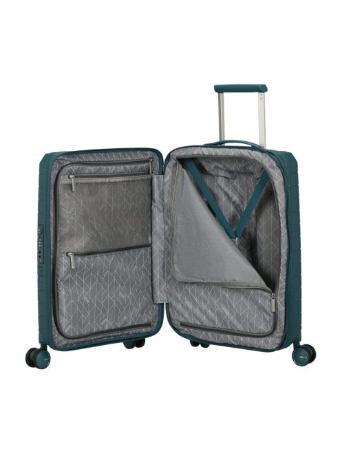 El 100% del peso del forro interior, la capacidad de expansión y las cremalleras está fabricado con plástico PET reciclado posconsumo, utilizando 7 botellas recicladas de 500 ml.