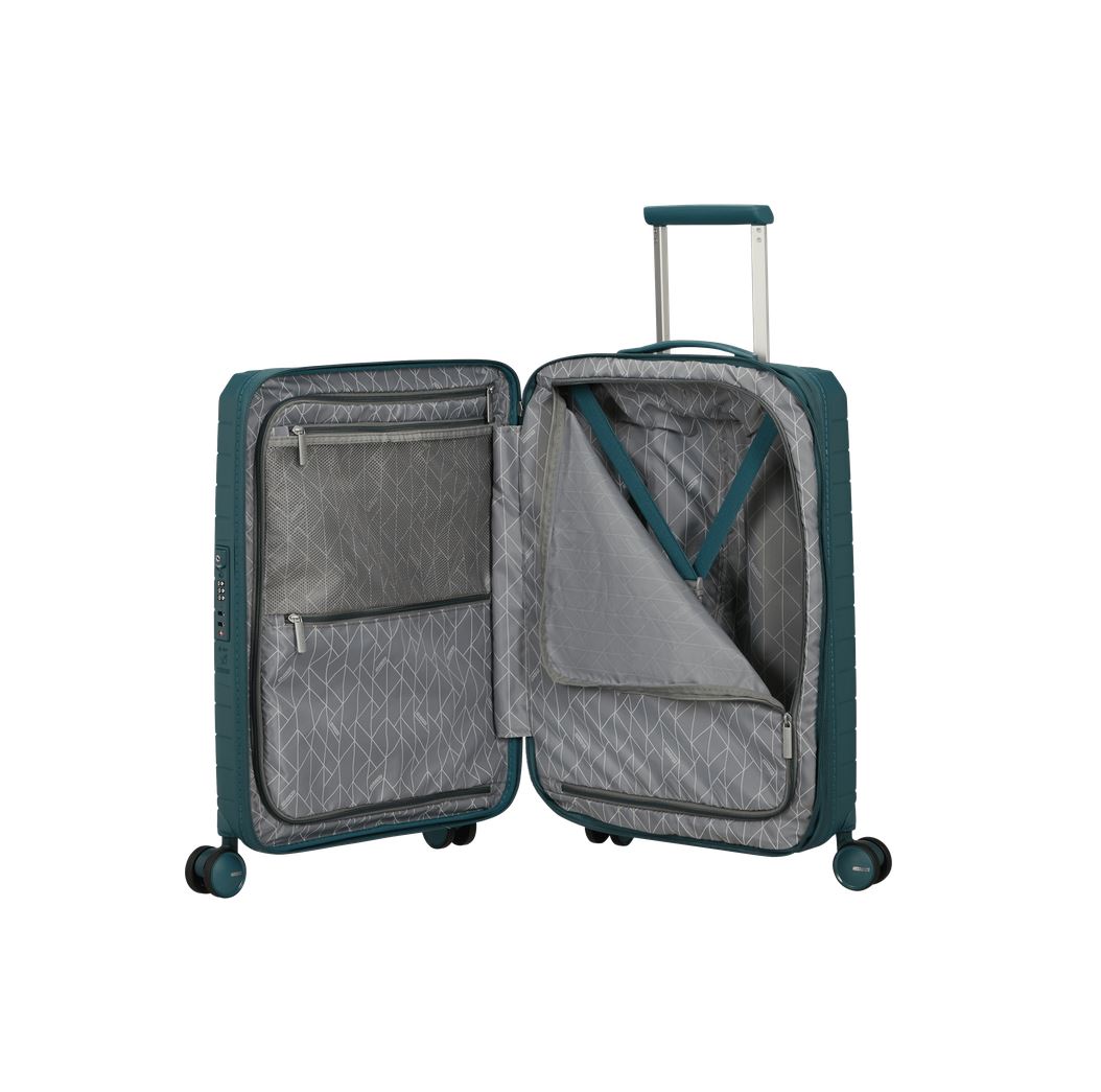 El 100% del peso del forro interior, la capacidad de expansión y las cremalleras está fabricado con plástico PET reciclado posconsumo, utilizando 7 botellas recicladas de 500 ml.