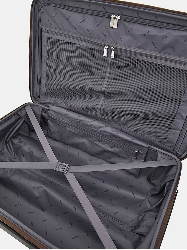 Logotipo de triángulo metálico en la parte delantera. Medidas: 33 x 45 x 70 cm, ruedas y asa incluidas.
