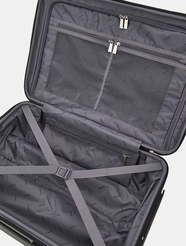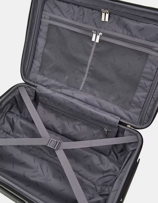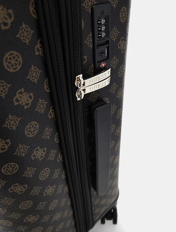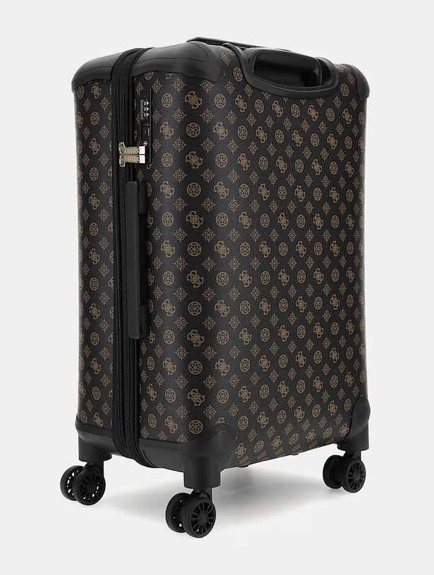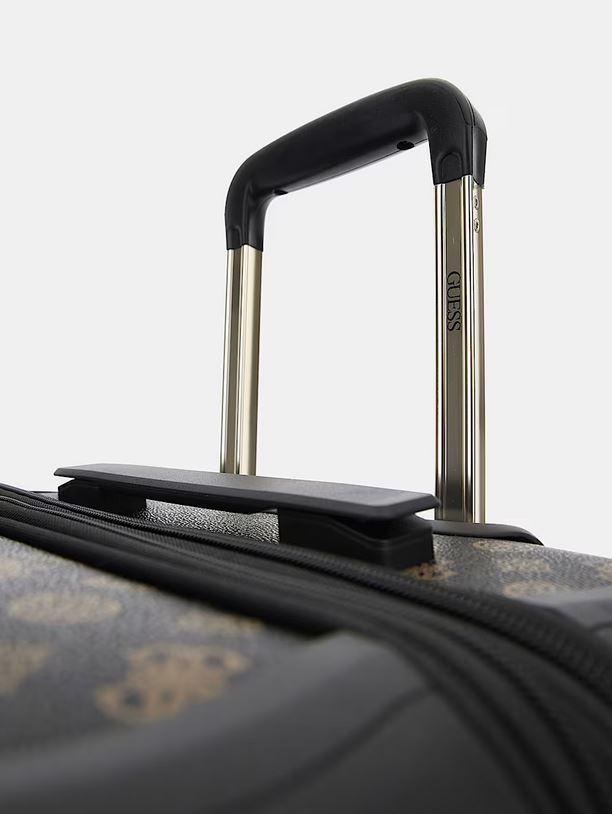 Logotipo de triángulo metálico en la parte delantera. Medidas: 22 x 37 x 56 cm, ruedas y asa incluidas.