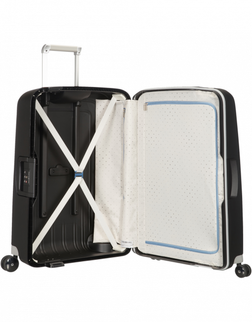 Cerradura Cerradura con tres puntos de anclaje que permite a los viajeros cerrar su maleta en movimiento. Con cerradura TSA para viajar seguro a EEUU.