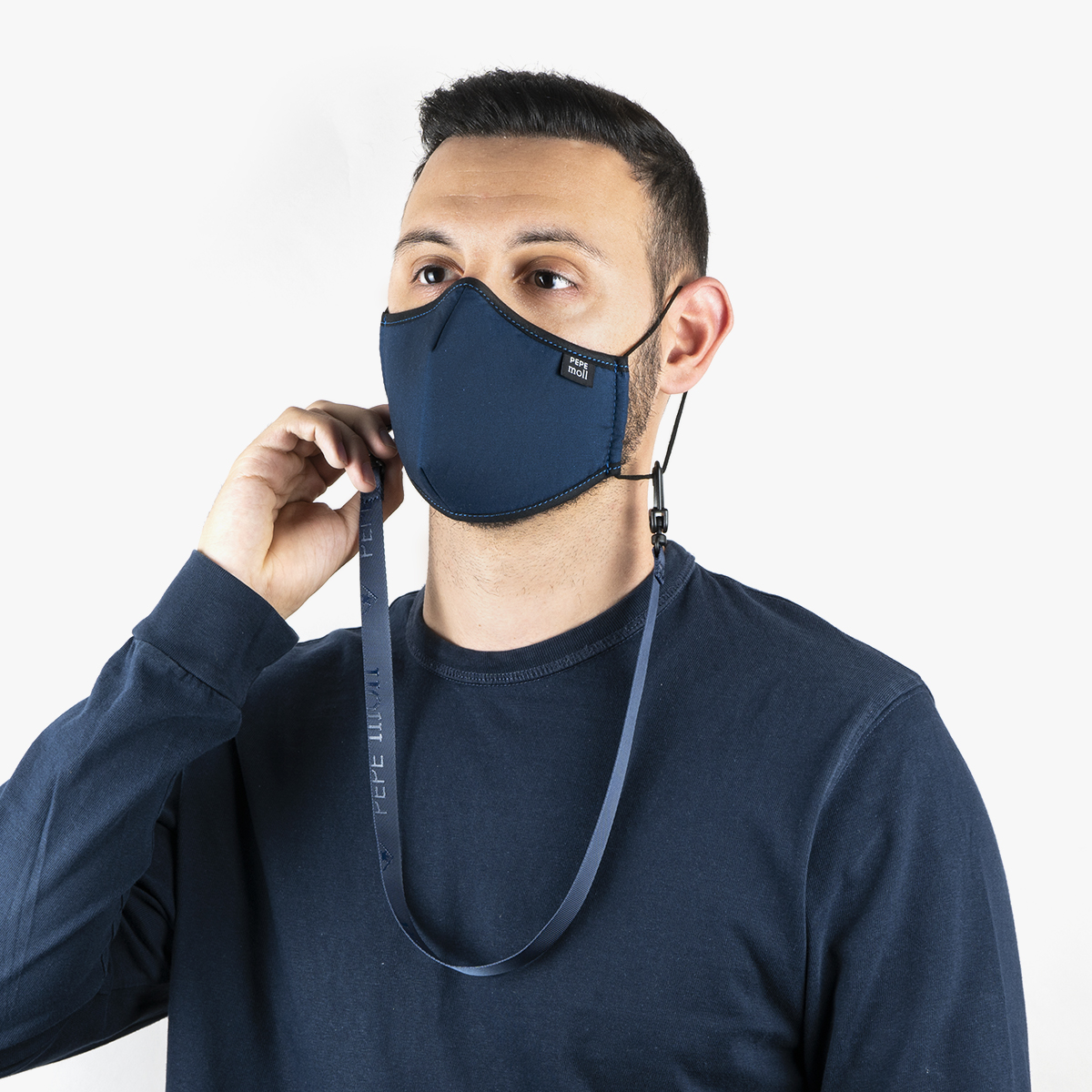 Mascarilla Elegant Navy Pepe Moll, es una mascarilla de adulto unisex higiénica reutilizable y lavable. Con gomas ajustables para tener un mayor ajuste y confort.