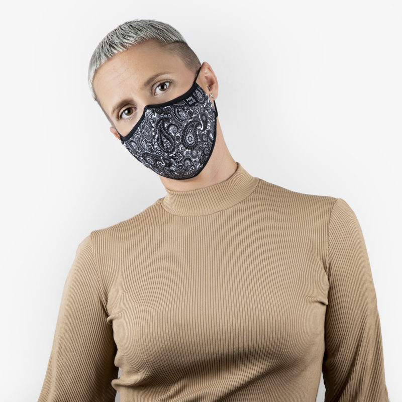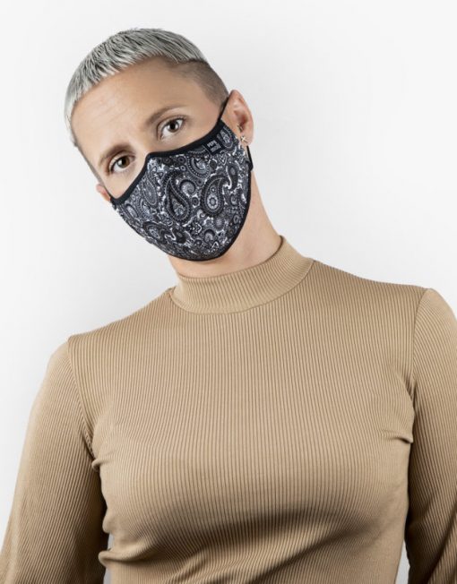 Mascarilla Elegant Cachemire Pepe Moll, es una mascarilla de adulto unisex higiénica reutilizable y lavable. Con gomas ajustables para tener un mayor ajuste y confort.