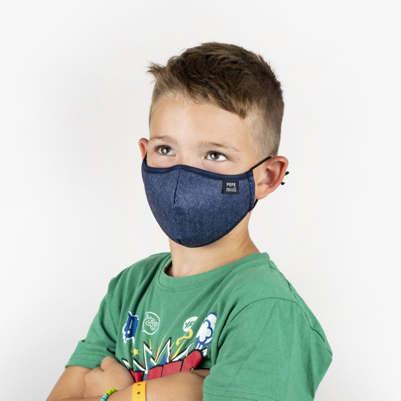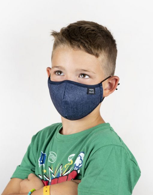 Mascarilla Junior jeans Pepe Moll, es una mascarilla junior unisex higiénica reutilizable y lavable. Con gomas ajustables para tener un mayor ajuste y confort.