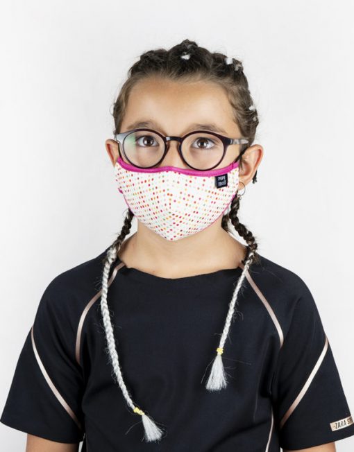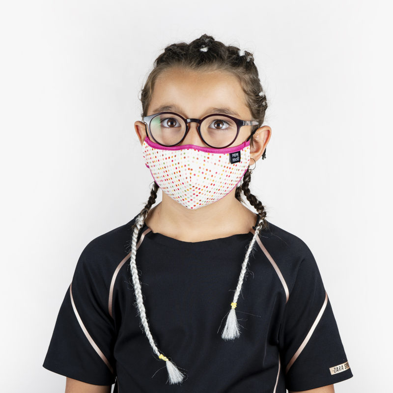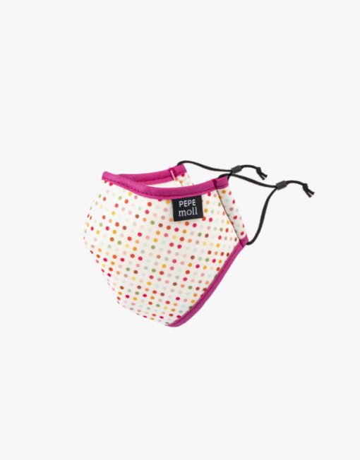 Mascarilla Junior multi-lunares Pepe Moll, es una mascarilla junior unisex higiénica reutilizable y lavable. Con gomas ajustables para tener un mayor ajuste y confort.