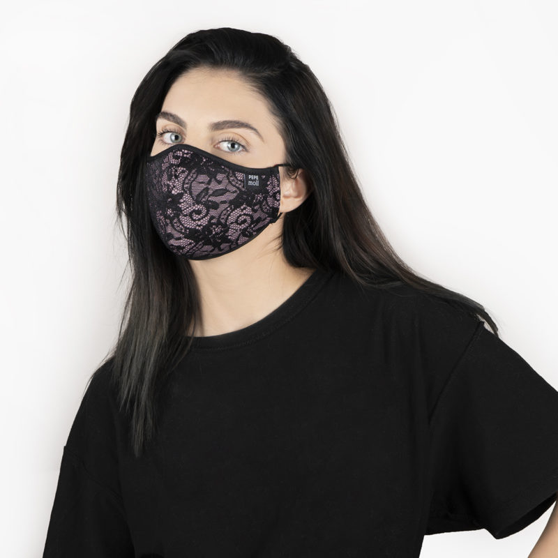 Mascarilla Premium encaje nude Pepe Moll. Una mascarilla certificada, lavable y reutilizable.