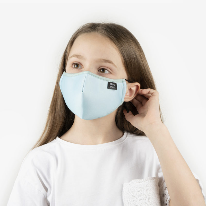 Mascarilla Junior Degrade Aqua de Pepe Moll. Una mascarilla certificada, lavable y reutilizable. Con un tejido tricapa con la máxima transpiración y comodidad. Se adapta fácilmente gracias a sus gomas ajustables para obtener mayor confort. Cuenta con un 47% de tejido reciclado y eficacia de filtración bacteriana del 97,9%.