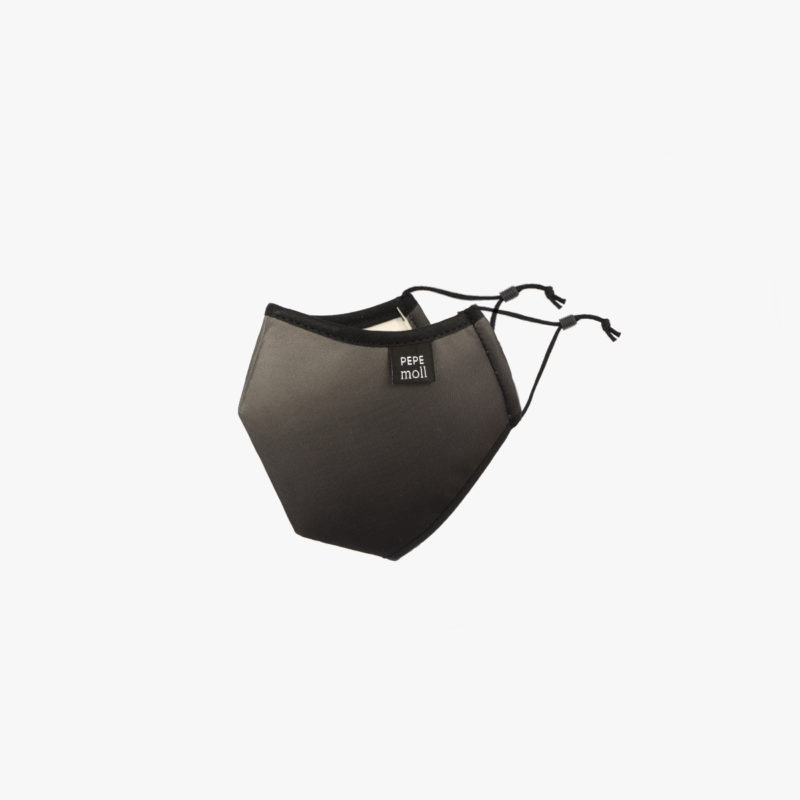 Mascarilla Junior Degrade Negro de Pepe Moll. Una mascarilla certificada, lavable y reutilizable. Con un tejido tricapa con la máxima transpiración y comodidad. Se adapta fácilmente gracias a sus gomas ajustables para obtener mayor confort. Cuenta con un 47% de tejido reciclado y eficacia de filtración bacteriana del 97,9%.
