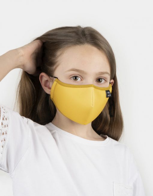 Mascarilla Junior Degrade Ocre de Pepe Moll. Una mascarilla certificada, lavable y reutilizable. Con un tejido tricapa con la máxima transpiración y comodidad. Se adapta fácilmente gracias a sus gomas ajustables para obtener mayor confort. Cuenta con un 47% de tejido reciclado y eficacia de filtración bacteriana del 97,9%.