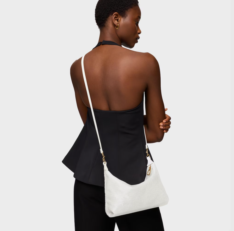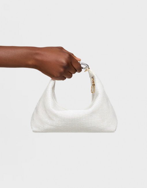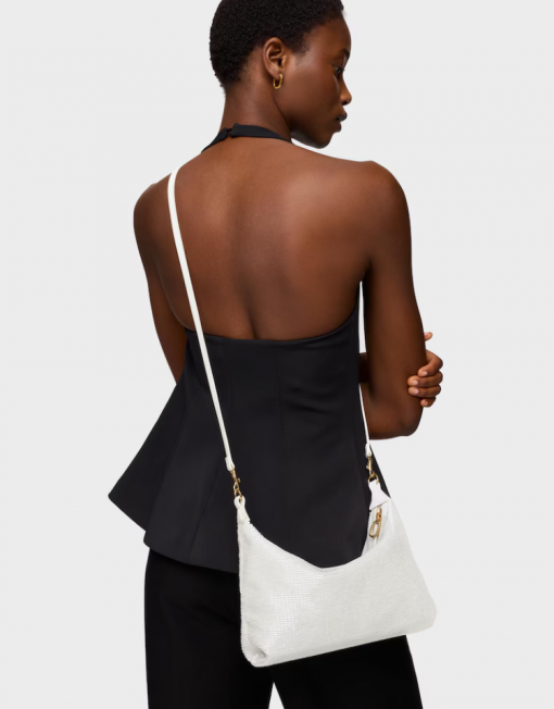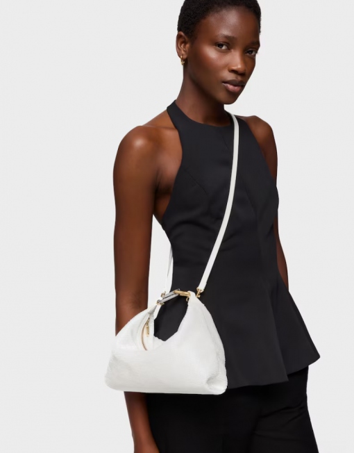 Bolso mini bandolera TOUS Hold en color marfil. Cierre de cremallera. Asa de mano y asa bandolera extraíble. Medidas (alto x ancho x fondo): 16 x 30 x 20 cm.