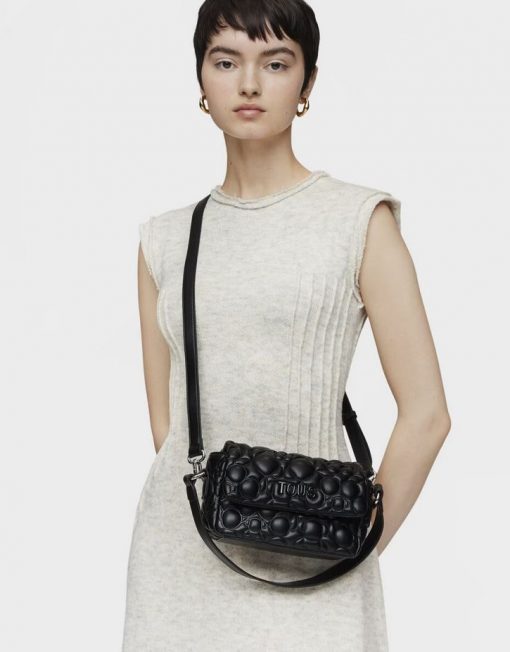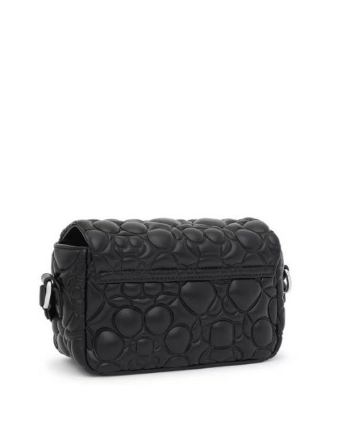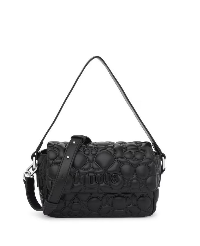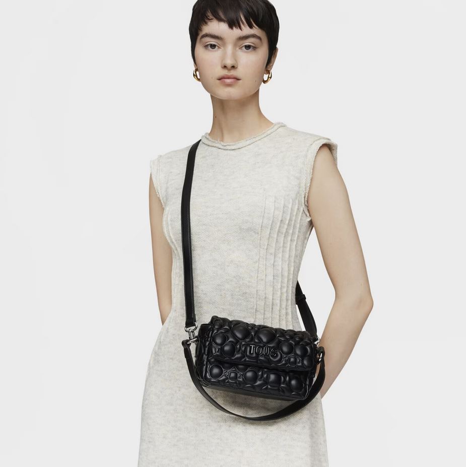 Bolso mini bandolera de piel sintética TOUS Bold en color negro. Cierre de botón magnético. Asa de mano fija y asa bandolera ajustable y extraíble. Medidas (alto x ancho x fondo): 14 x 23 x 8 cm.