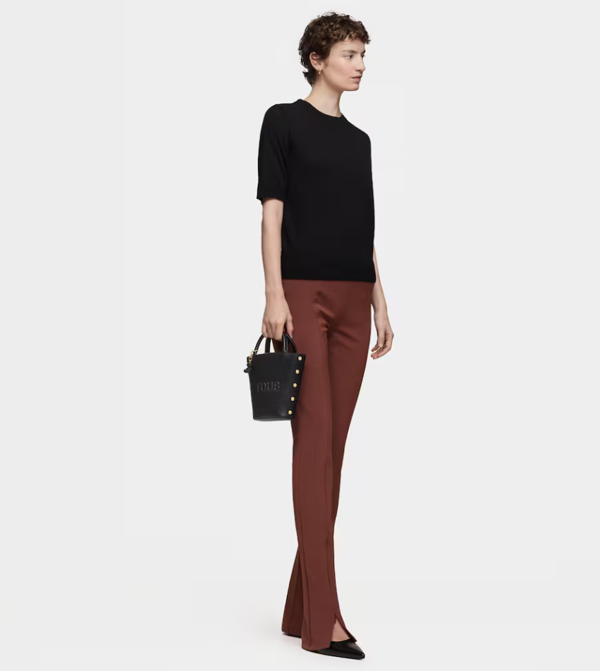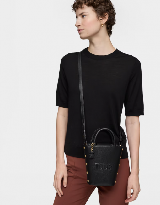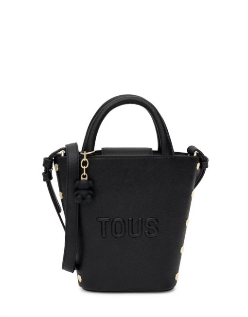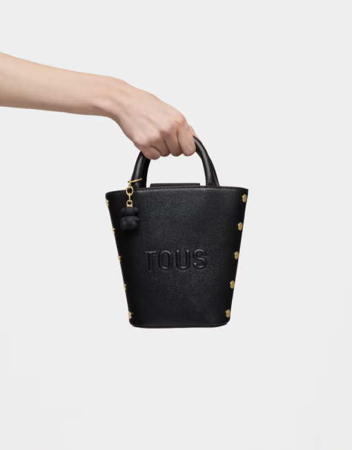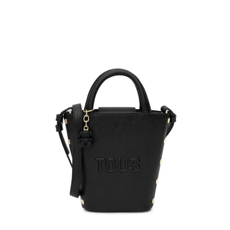 Mini bolso TOUS Back to basics de poliuretano en color negro. Cierre con botón magnético. Asas fijas de mano y asa bandolera ajustable y desmontable. Incorpora un bonito detalle de oso colgante. Medidas (alto x ancho x fondo): 18 x 17 x 6 cm.