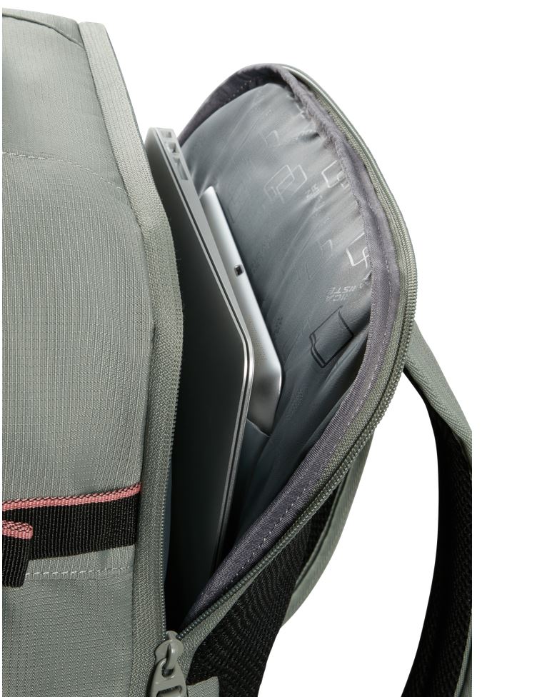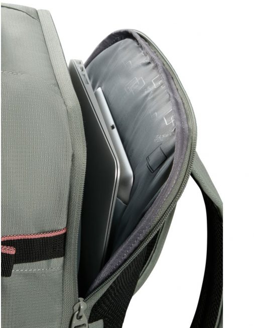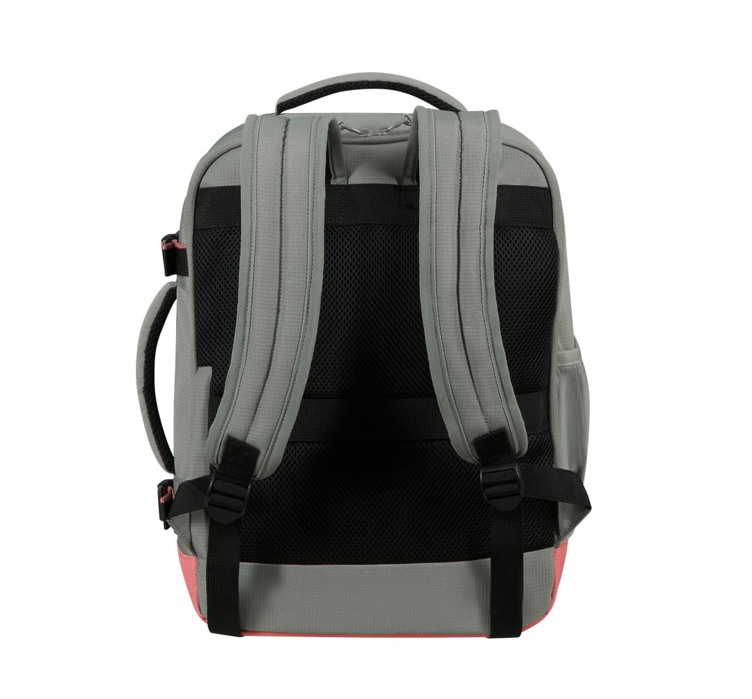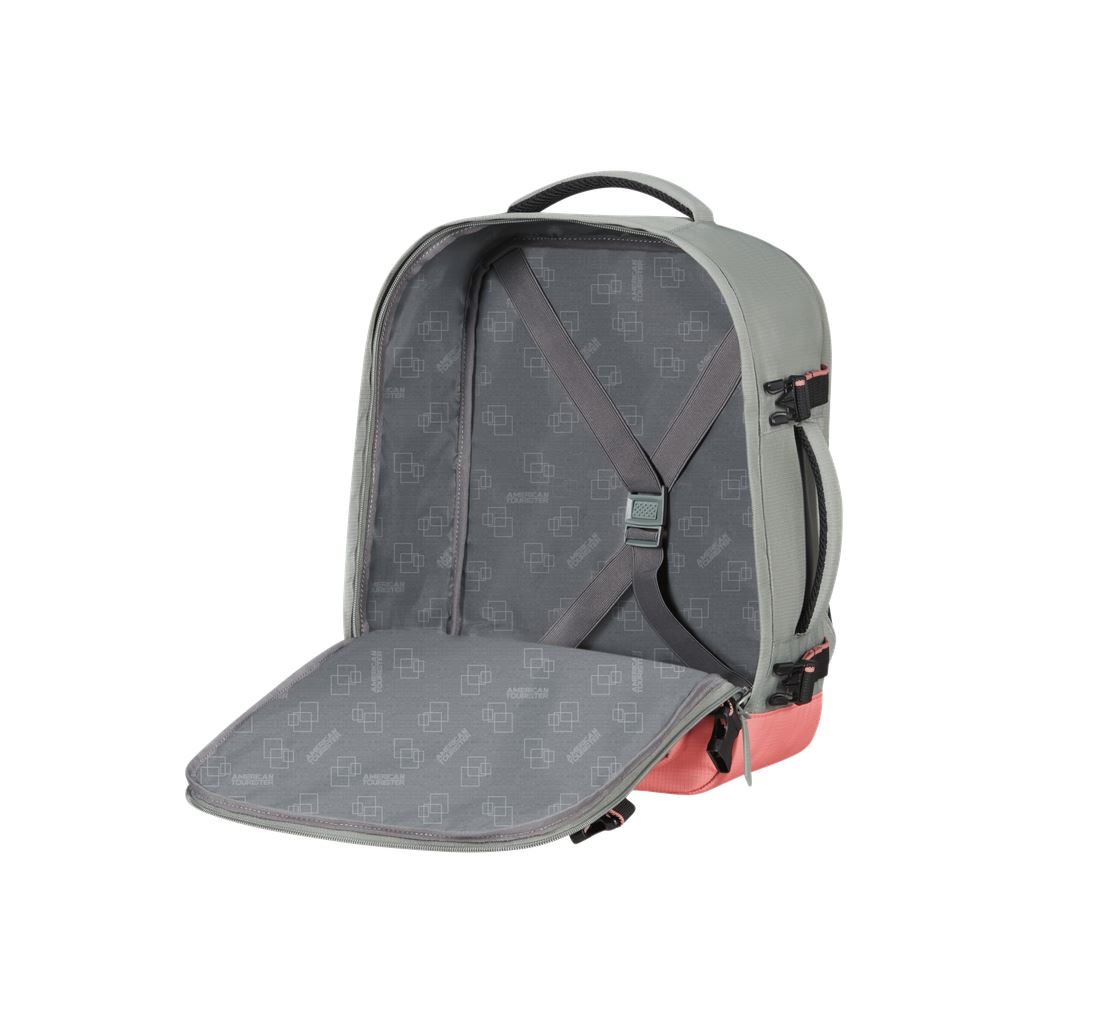 El 100% del peso del forro interior, la capacidad de expansión y las cremalleras está fabricado con plástico PET reciclado posconsumo, utilizando 16 botellas recicladas de 500 ml.