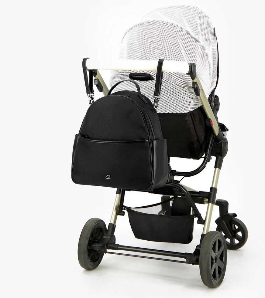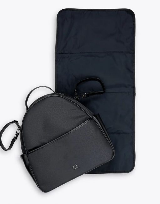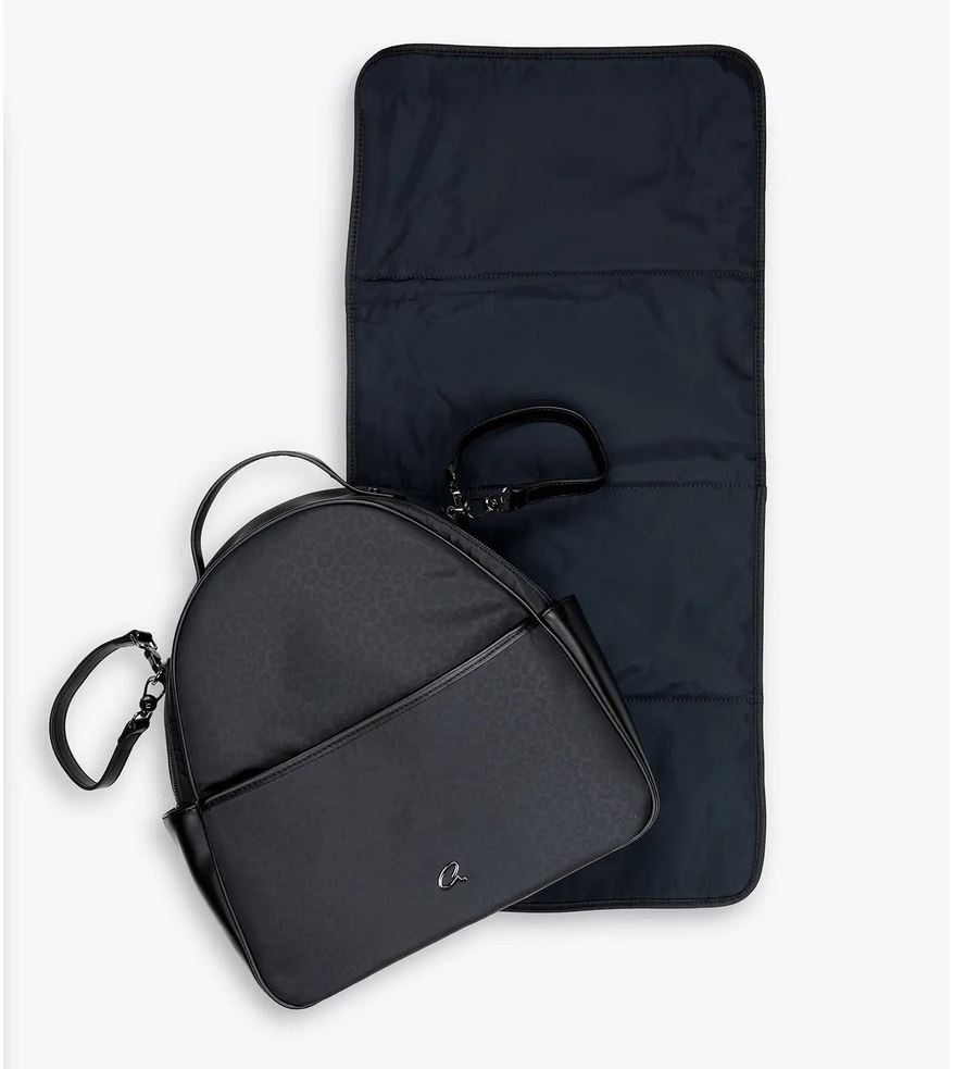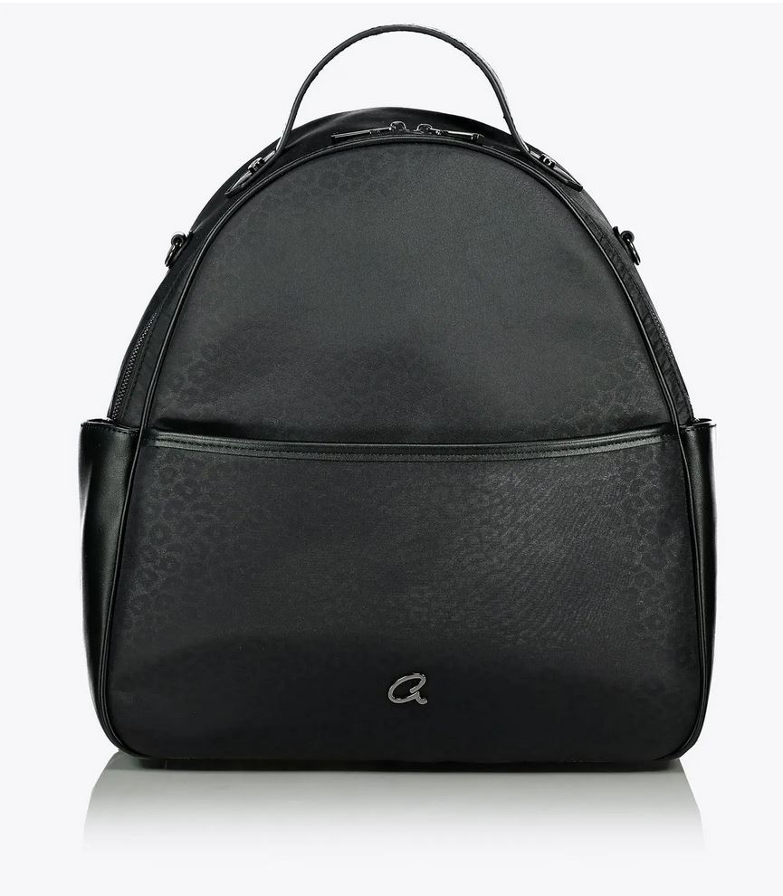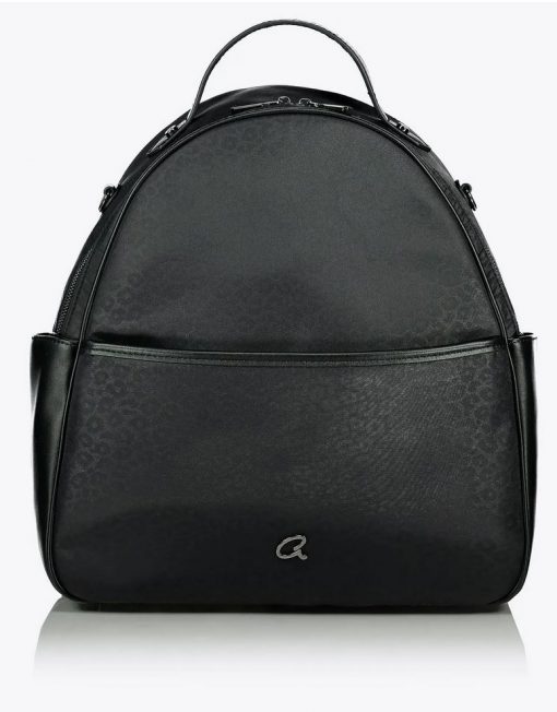 Mochila de leopardo para mamá con tapete removible y lavable. Asa de transporte superior y correas traseras ajustables. Con forro, hay compartimentos interiores y un bolsillo con cremallera. Bolsillos laterales y bolsillo delantero con logo ‘a’ de metal. Se incluyen correas para trolley con ganchos.