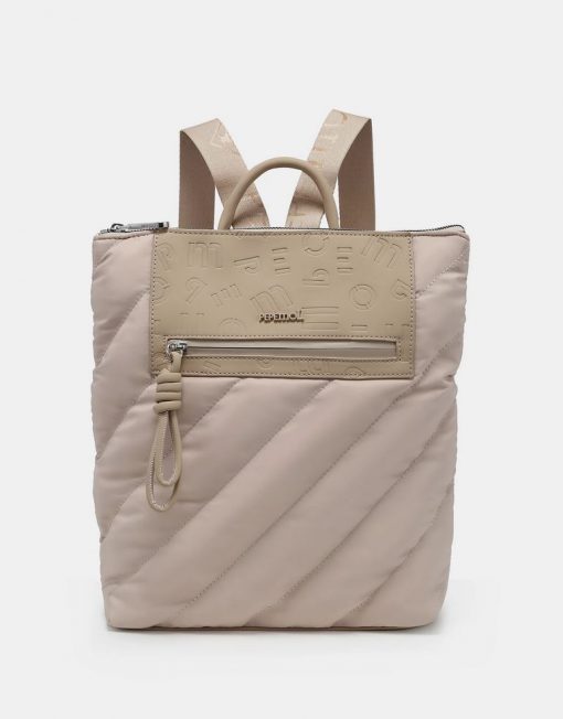 La mochila 261101 es la mezcla perfecta entre comodidad y diseño actual. Su acabado acolchado con líneas diagonales le da un aire moderno y ligero, mientras que el detalle frontal con relieve del logo y el tirador decorativo con nudo aportan ese toque distintivo que marca la diferencia. Es una mochila pensada para acompañarte en el día a día, con un estilo cuidado y muy fácil de combinar.
