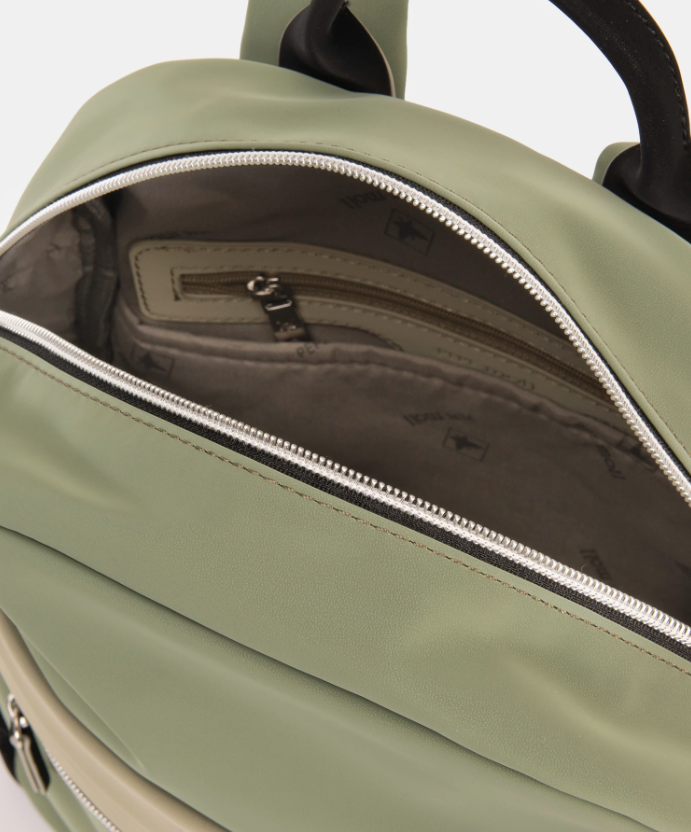 Dispone de correas ajustables y un asa de mano superior, pensadas para un uso cómodo. El compartimento principal tiene apertura con cremallera doble y el interior está completamente forrado, con un bolsillo interior con cremallera para una organización extra.