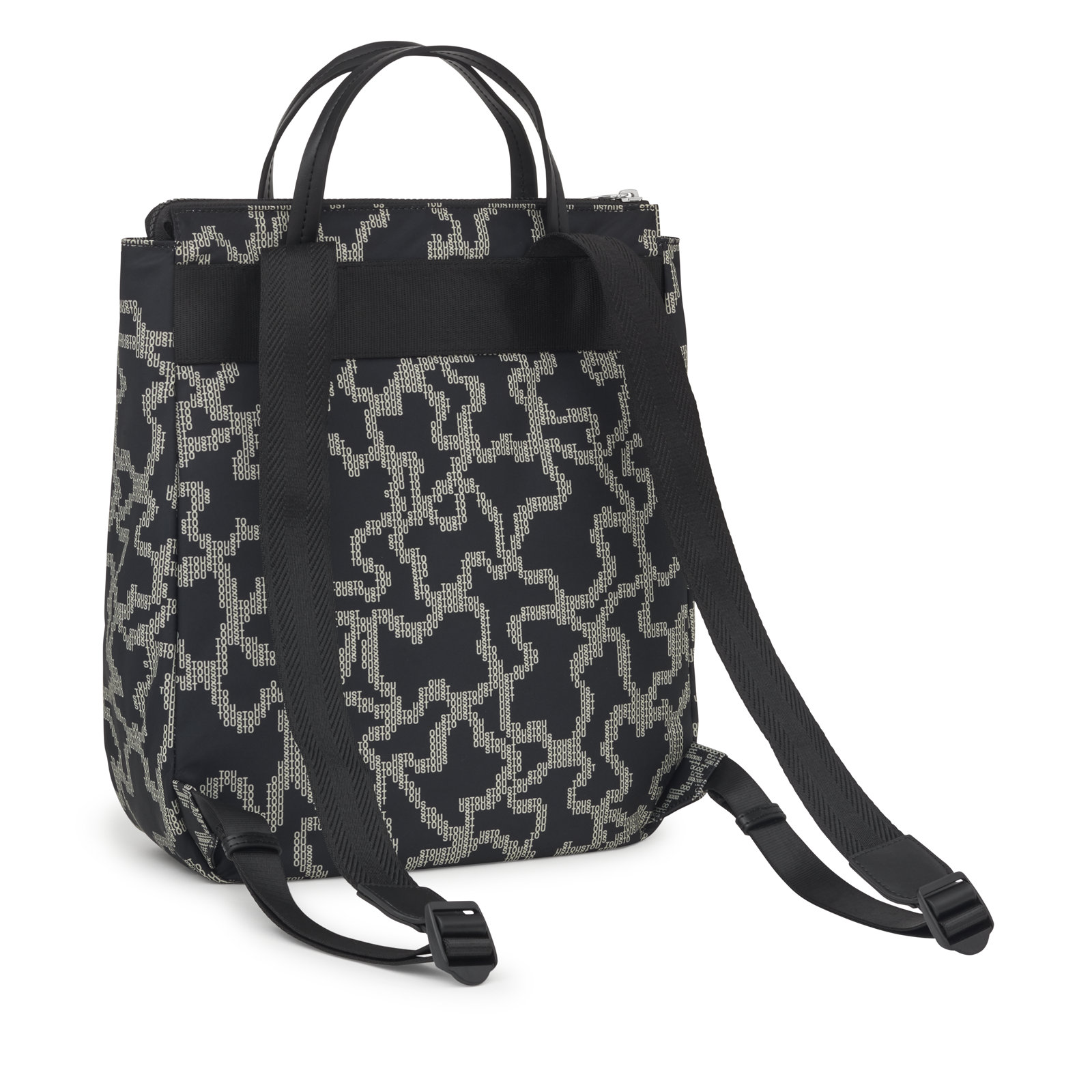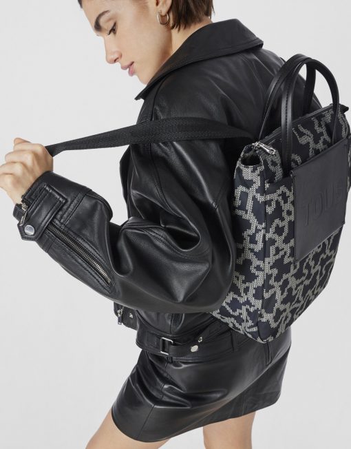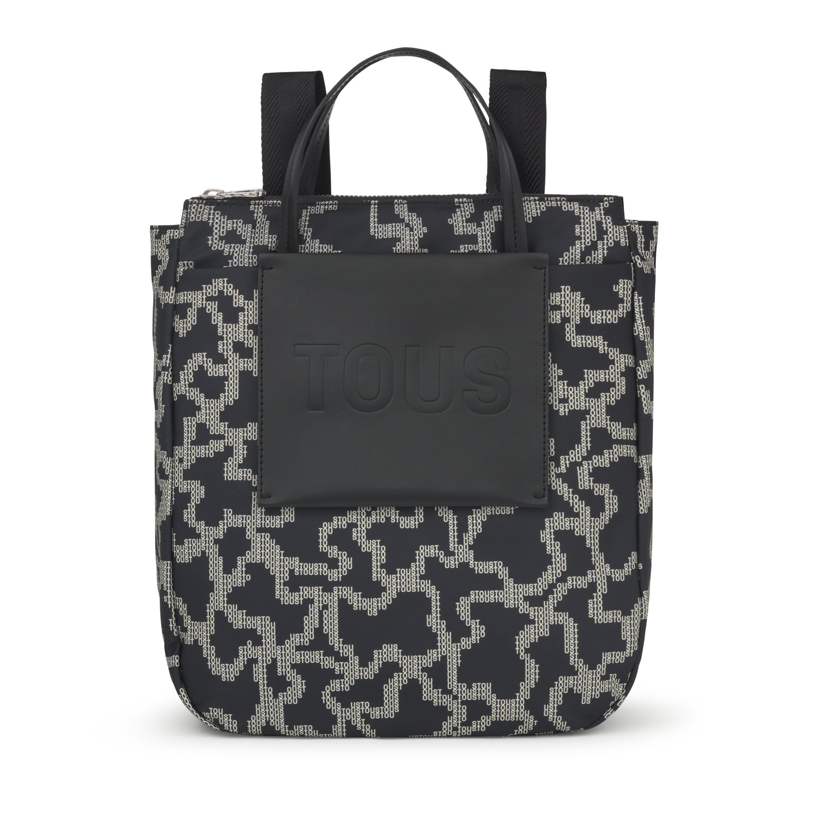 Mochila TOUS Kaos Pix Soft de poliéster reciclado con estampado en color negro y beige. También incorpora detalles de piel sintética. Compartimento principal con cremallera y bolsillo interior abierto. Bolsillo delantero con cierre magnético. Asas fijas de mano. Correas de hombro ajustables. Medidas (alto x ancho x fondo): 35 x 32 x 11,5 cm.