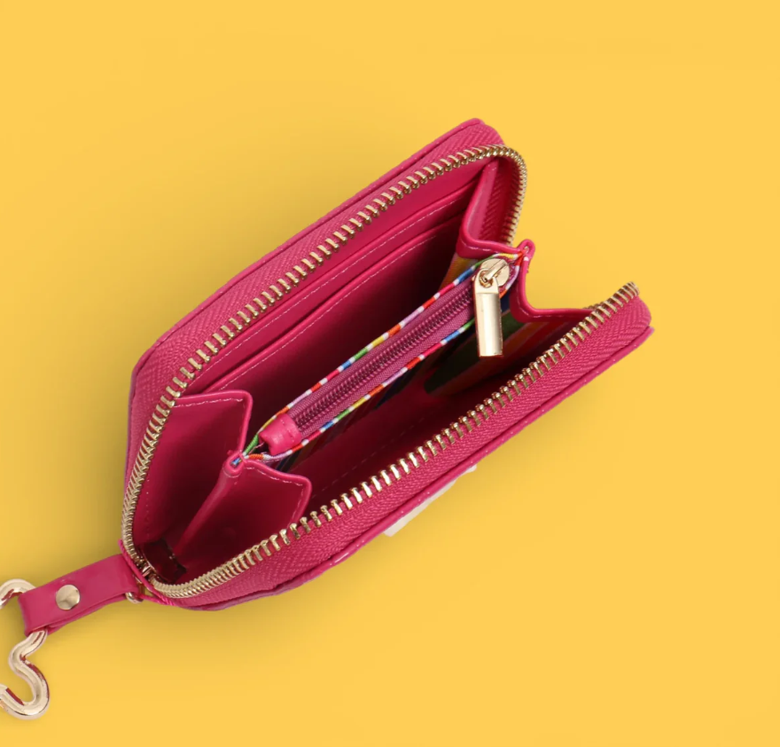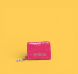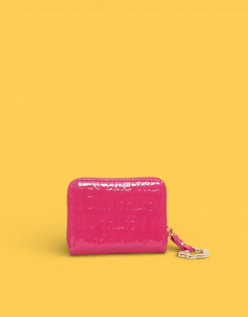 Monedero de charol con acabado brillante y logo distintivo en fucsia. Diseño compacto y funcional, perfecto para llevar contigo a diario. Su material resistente garantiza durabilidad, mientras que el color vibrante añade un toque de estilo a tu bolso. Ideal para guardar monedas, tarjetas y efectivo de forma organizada.