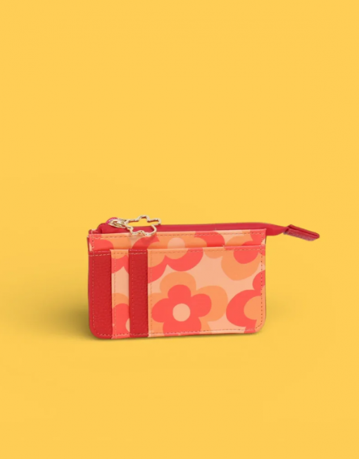 Monedero con diseño floral en tonos rojos que combina funcionalidad y estilo. Perfecto para guardar monedas, tarjetas y efectivo en un accesorio compacto y elegante. Su patrón de flores aporta un toque de color y personalidad a tu día a día. Ideal como regalo o complemento para cualquier ocasión.