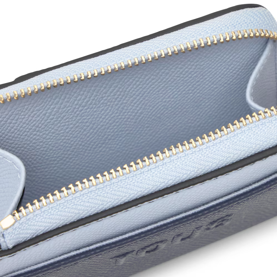 Monedero grande TOUS Audree Saffiano de poliéster reciclado en color azul marino. Cierre de cremallera. Contiene tres ranuras para tarjetas. Medidas (alto x ancho x fondo): 9 x 11,5 x 2,5 cm.