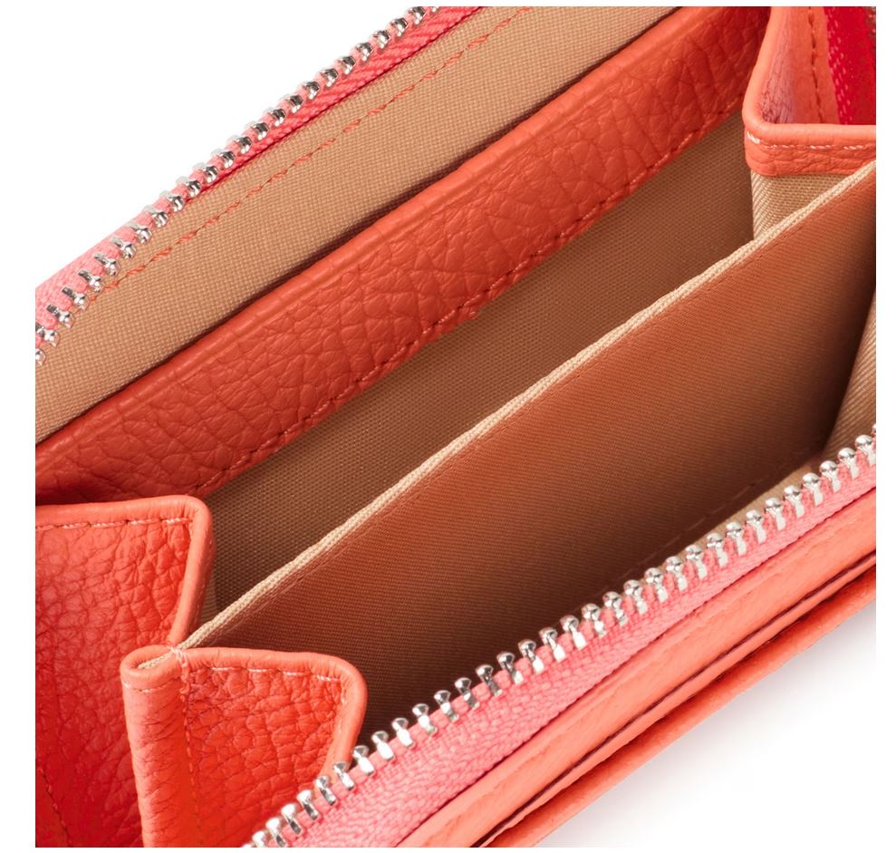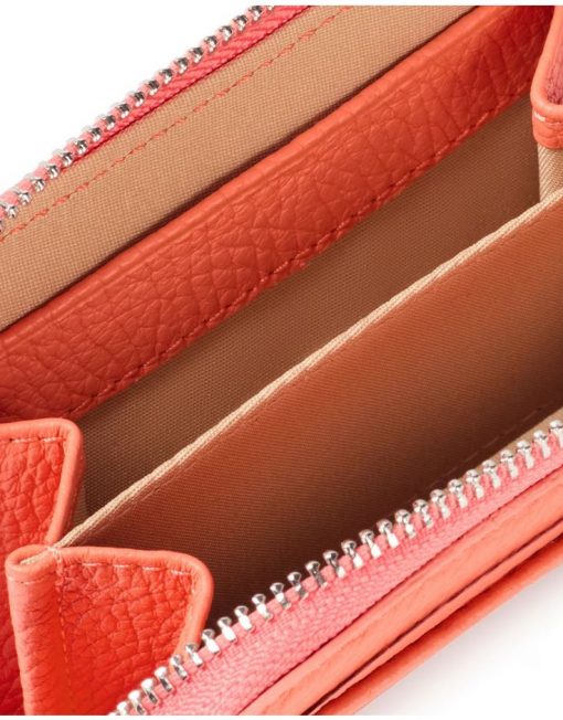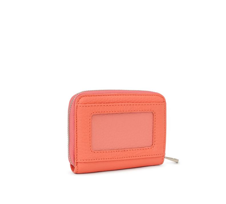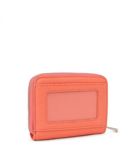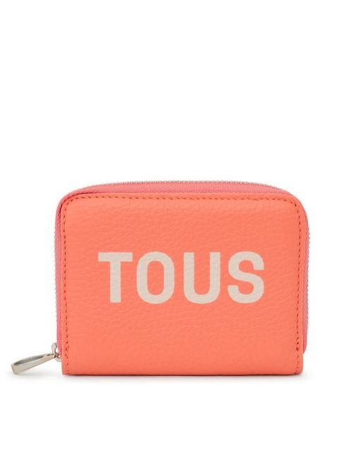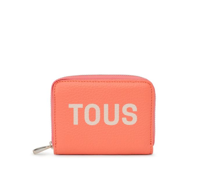 Monedero TOUS Balloon de piel vacuna con certificación LWG en color naranja. Cierre de cremallera. En el interior cuenta con dos compartimentos abiertos para monedas y dos ranuras para tarjetas. En el exterior hay una ranura abierta y transparente para llevar una tarjeta o el DNI. Medidas (alto x ancho x fondo): 8 x 10,5 x 2 cm.