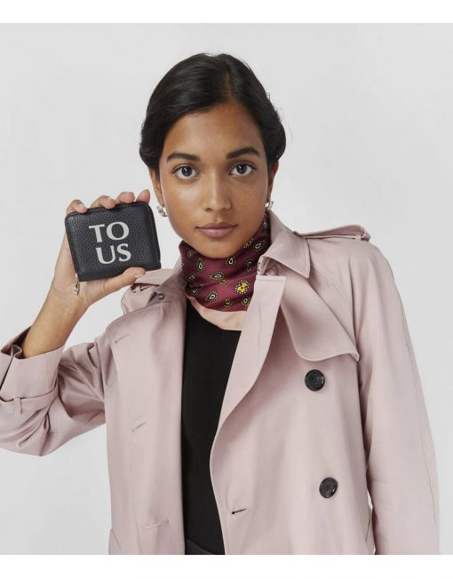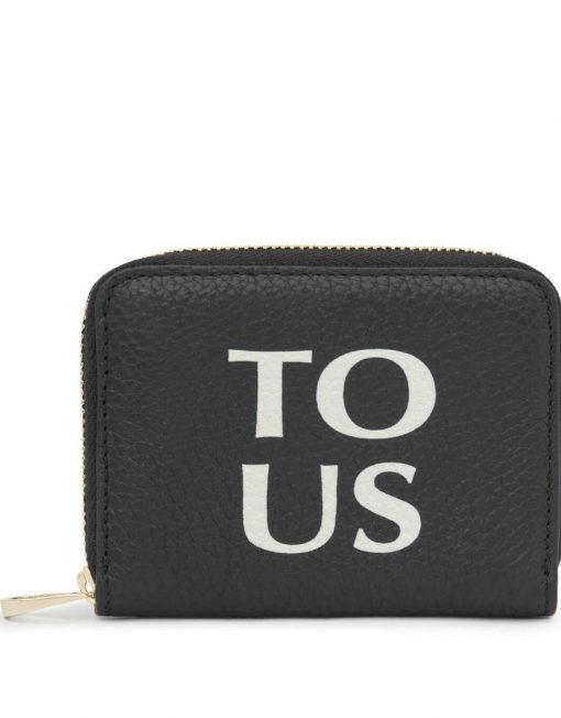 Monedero TOUS Balloon de piel vacuna con certificación LWG en color negro. Cierre de cremallera. En el interior cuenta con dos compartimentos abiertos para monedas y dos ranuras para tarjetas. En el exterior hay una ranura abierta y transparente para llevar una tarjeta o el DNI. Medidas (alto x ancho x fondo): 8 x 10,5 x 2 cm.