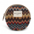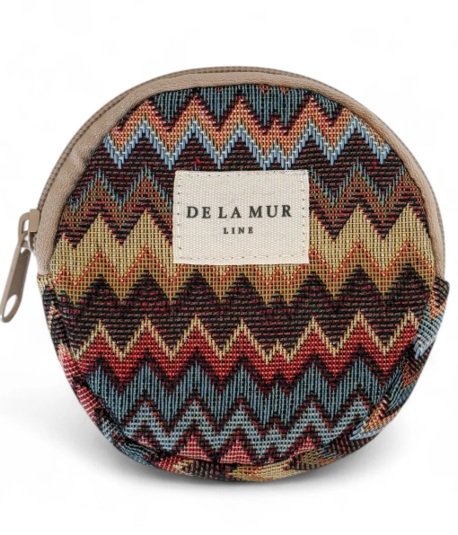 Monedero redondo con cremallera en la parte superior y pequeña asa de cordón de color beige en el lateral. Con tejido grueso de jacquard con estampado tipo zigzag multicolor. Cada articulo puede tener una variación en el estampado, dependiendo de donde se haya efectuado el corte de la pieza. Forrado de tejido grueso de color gris en la parte interior. Para su correcto mantenimiento se aconseja lavarlo en frío a mano y no utilizar secadora.