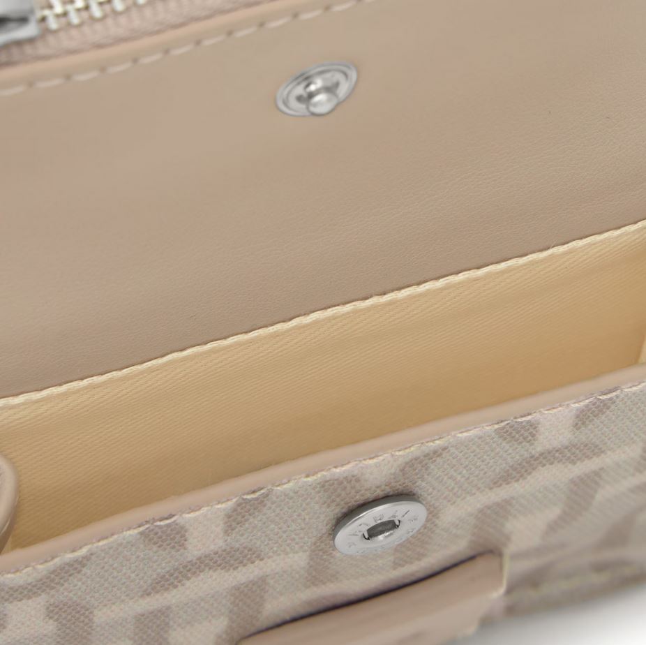 Monedero tarjetero solapa TOUS Double Way Manifesto de algodón y poliéster reciclado en color arena. Cierre de botón a presión. Contiene tres ranuras para tarjetas, un bolsillo con cremallera y un compartimento para monedas. Medidas (alto x ancho x fondo): 8,5 x 10 x 3,3 cm.
